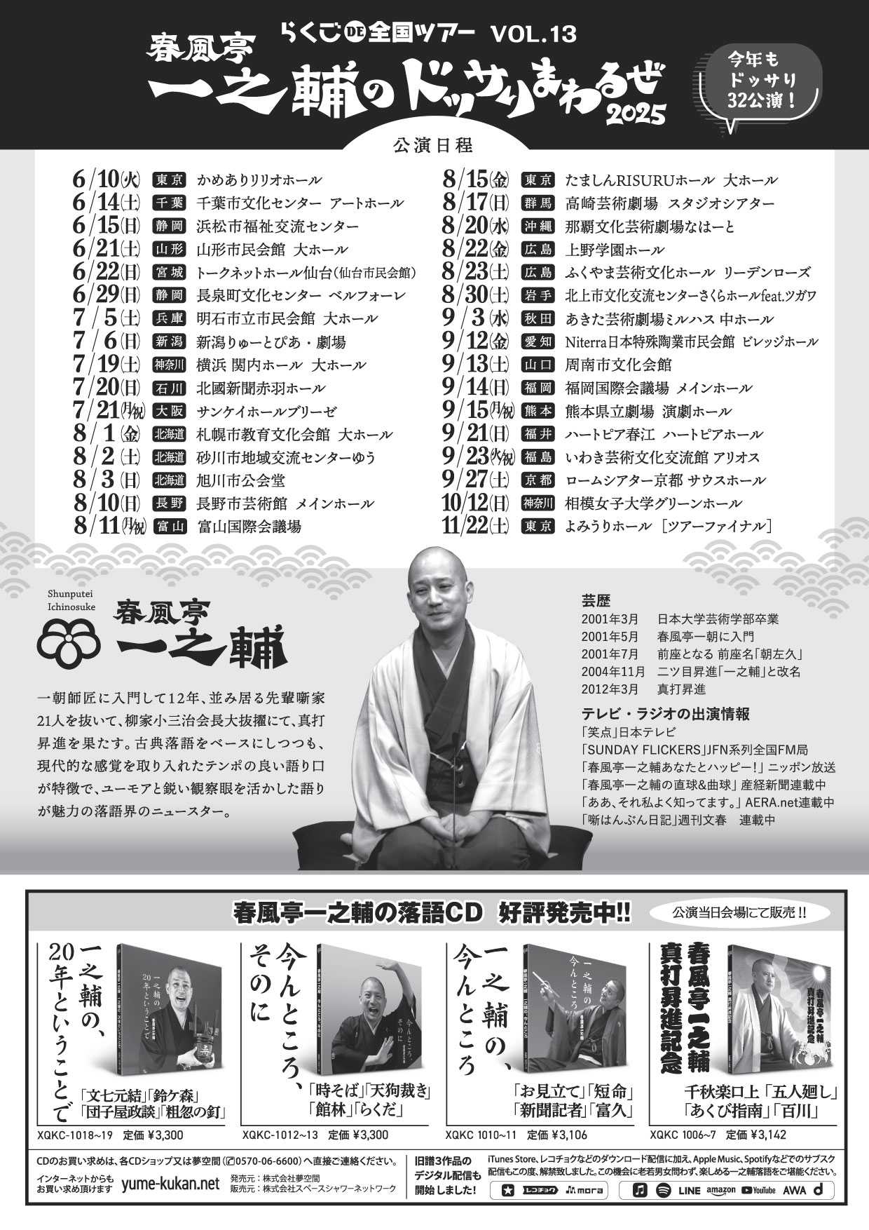 「春風亭一之輔のドッサりまわるぜ2025」は13年連続の開催。去年は31公演だったらしいが、今年は32公演。東京近郊はもう数回参戦したい。