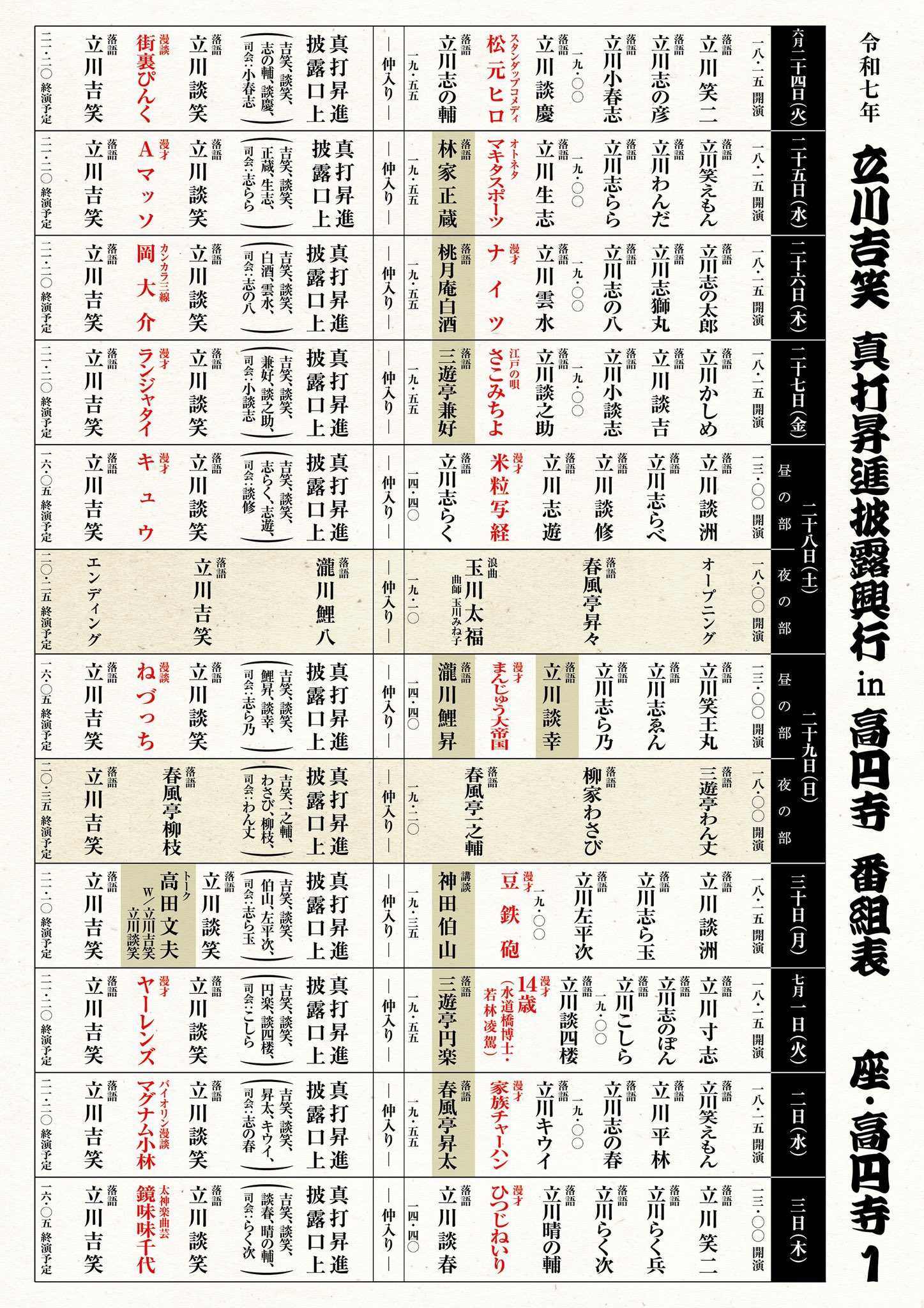 ​2025/07/03 (木) 立川吉笑さんの真打披露興行@高円寺1