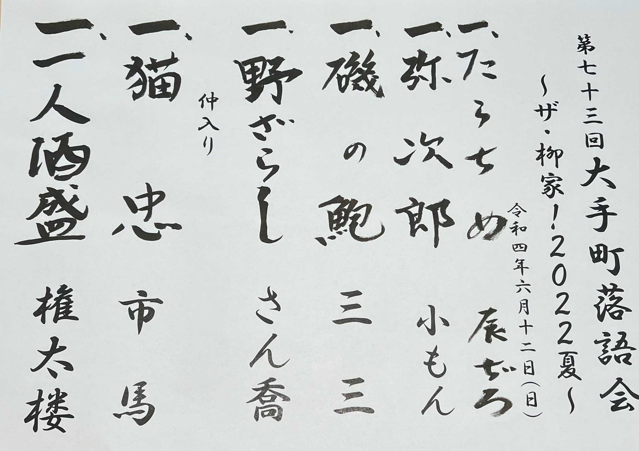 ​2022年6月12日(日)13:00開演 第73回大手町落語会~ザ·柳家!2022夏@日経ホール