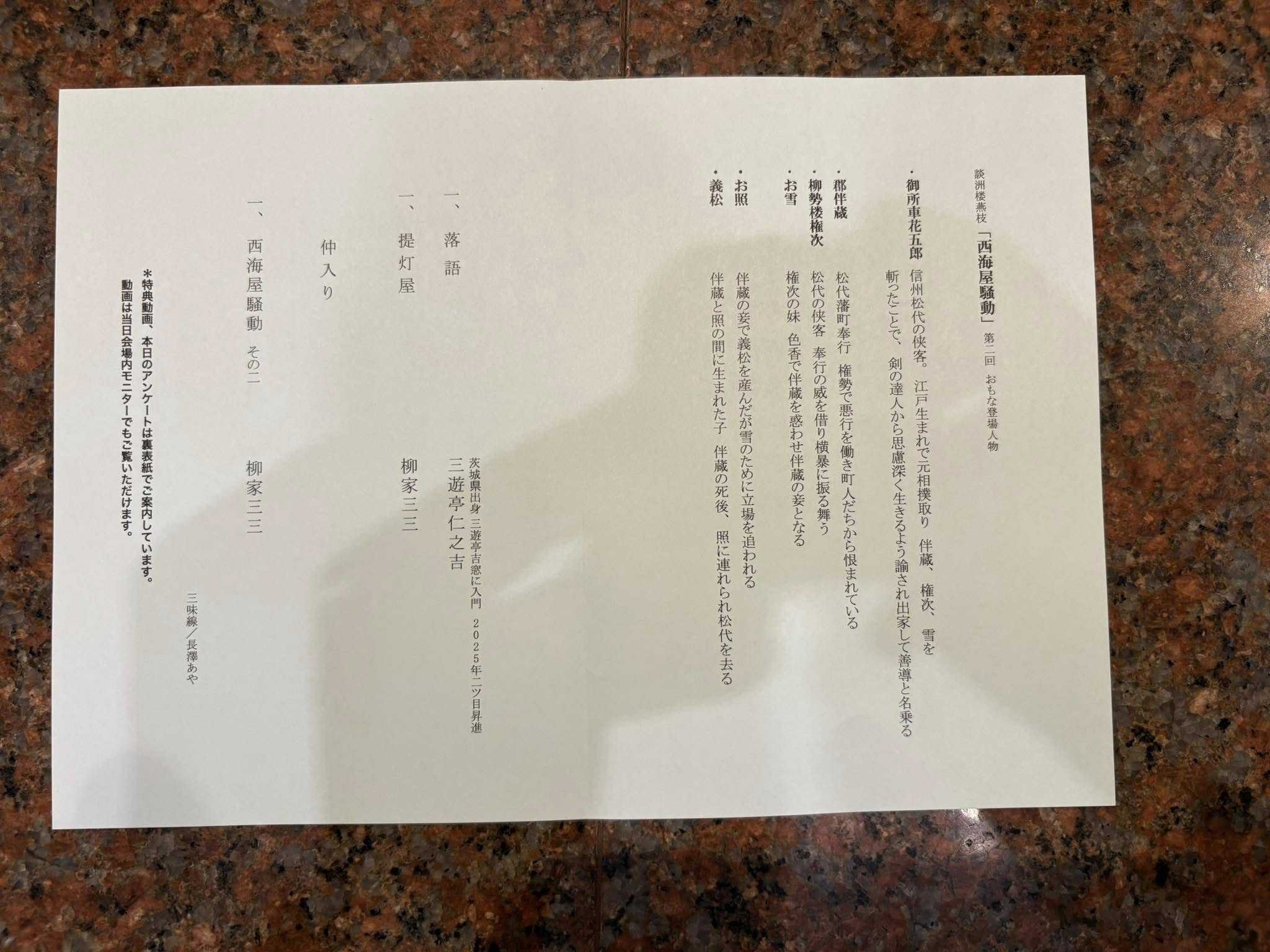メインの演目は談州楼燕枝作「西海屋騒動」第2回。
