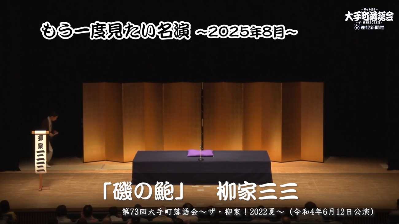 《もう一度見たい名演》柳家三三「磯の鮑」(第73回大手町落語会~ザ・柳家!2022夏~ 令和4年6月12日公演)