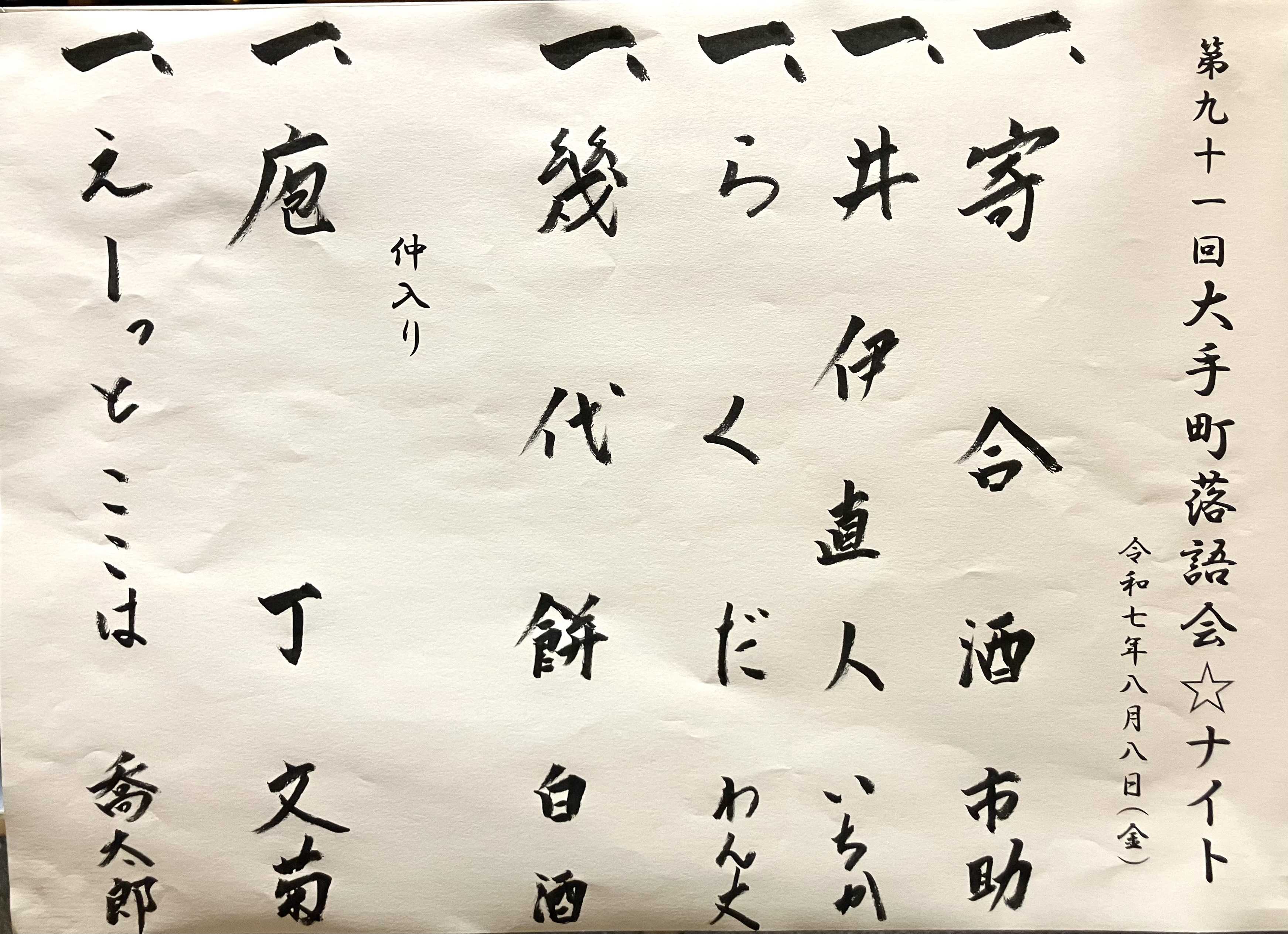 2025年8月8日(金)第九十一回大手町落語会☆ナイト@日経ホール