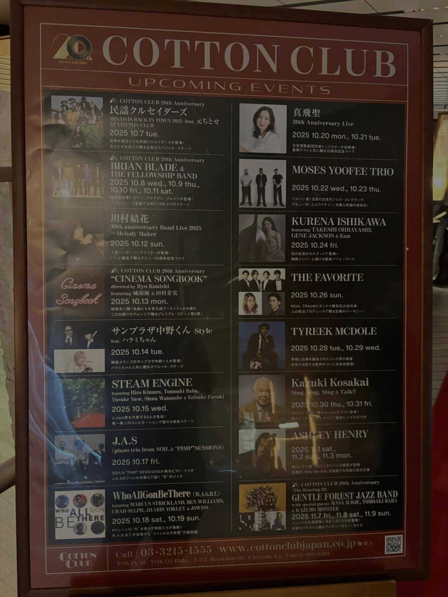 今日はBrian Bladeさんのバンドを聴きに丸の内コットンクラブに参上!