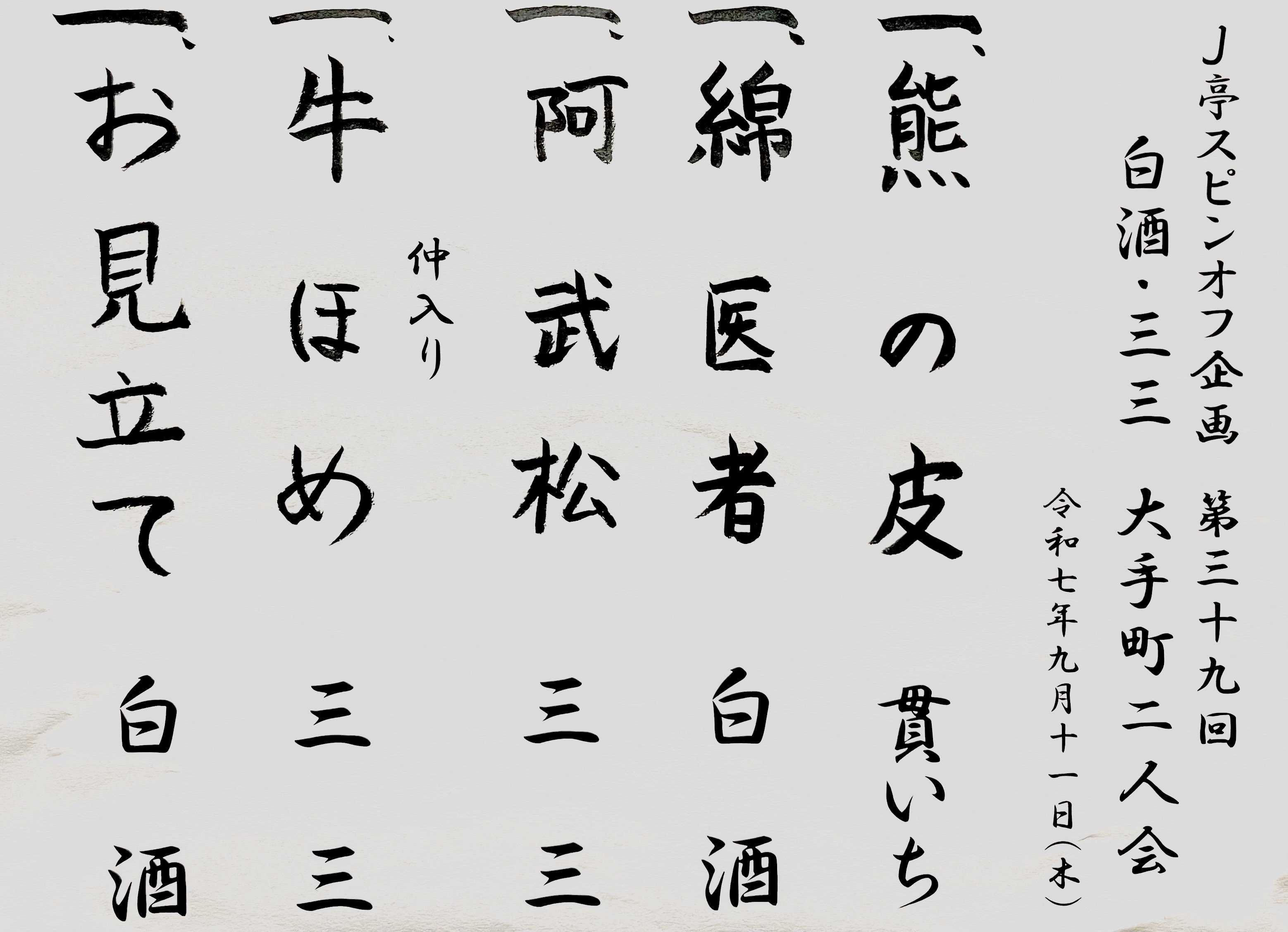 ​2025/9/11@日経ホール J亭スピンオフ企画39 白酒・三三 大手町二人会