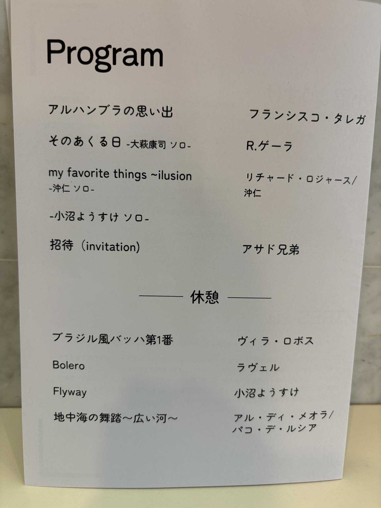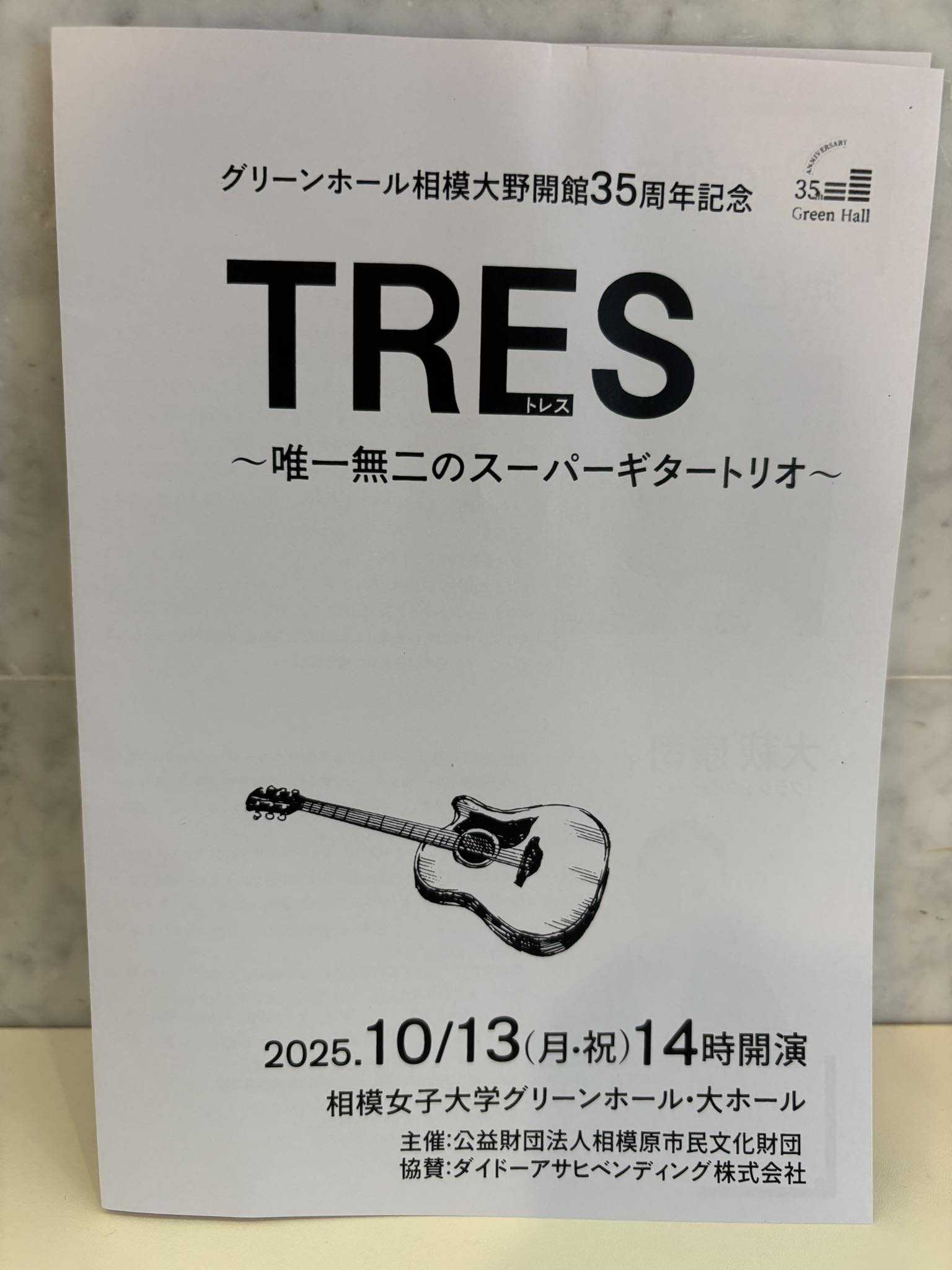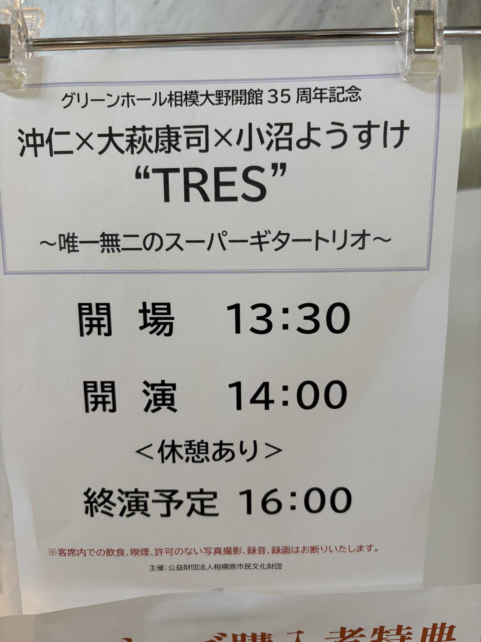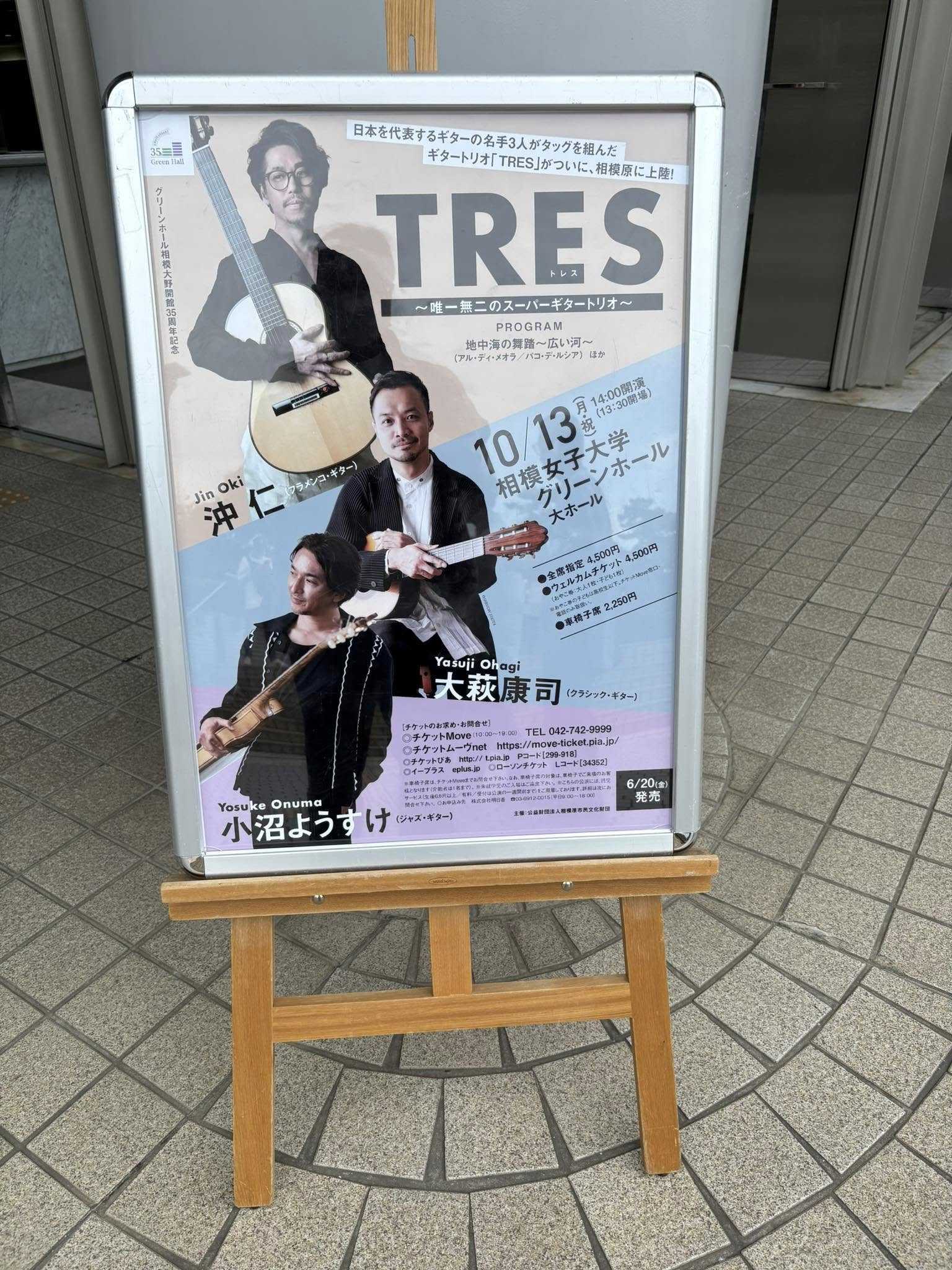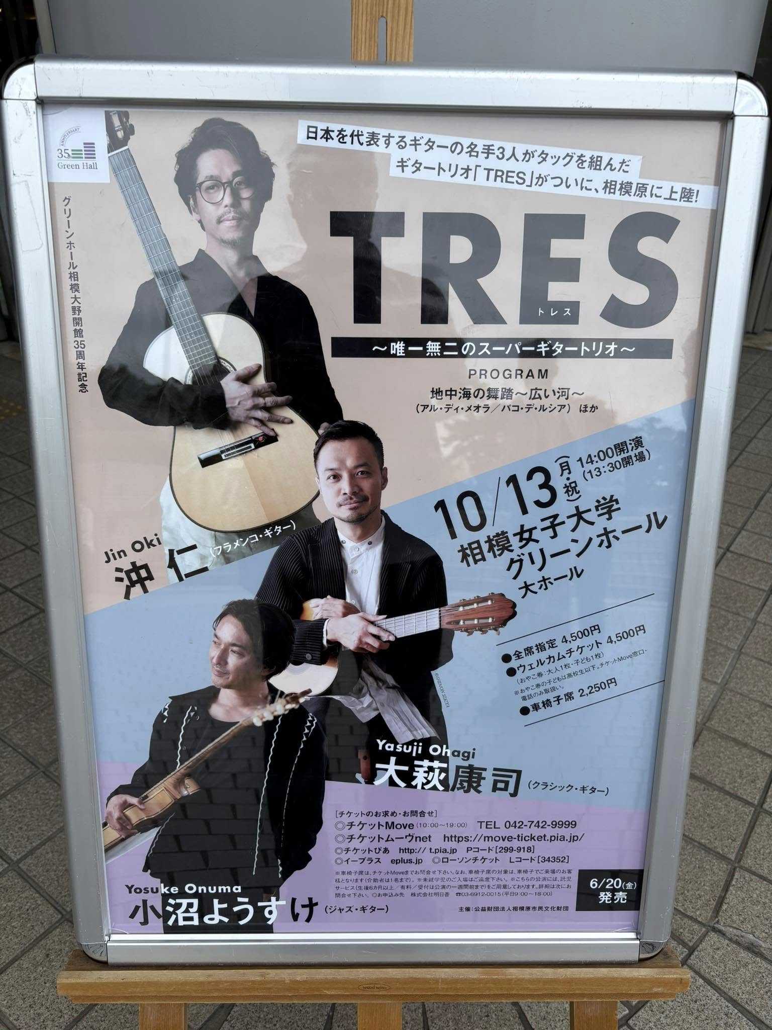第一試合は沖仁さん、大萩康司さん、小沼ようすけさんの3guitarsによるTRESを聴きに相模女子大学グリーンホールに参上!