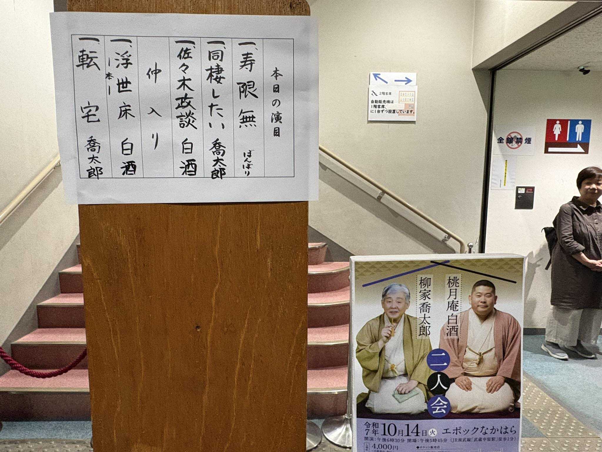 ​2025/10/14@エポックなかはら 柳家喬太郎・桃月庵白酒 二人会