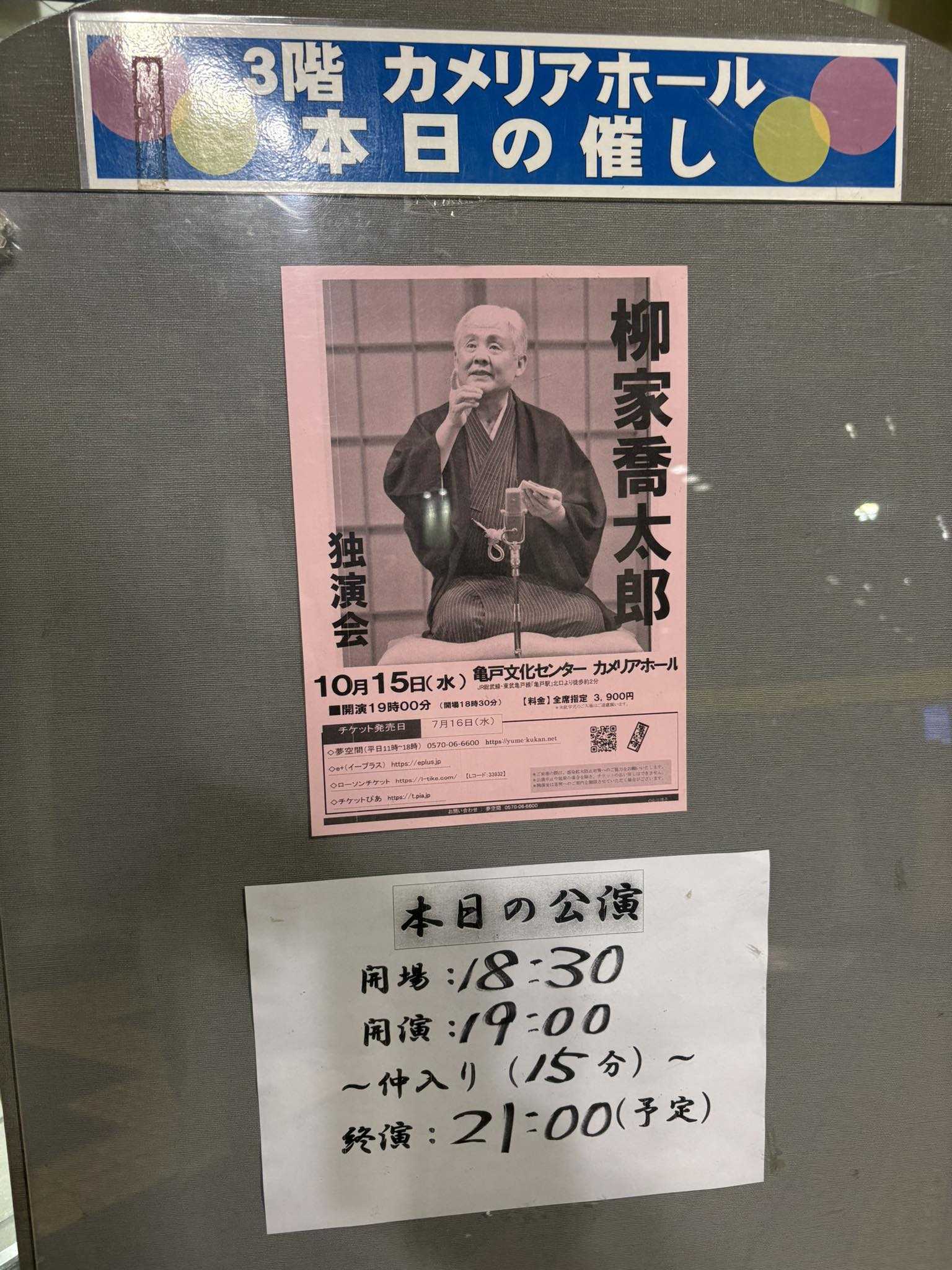 今日も喬太郎さんの独演会を聴きに亀戸文化センターカメリアホールに参上!