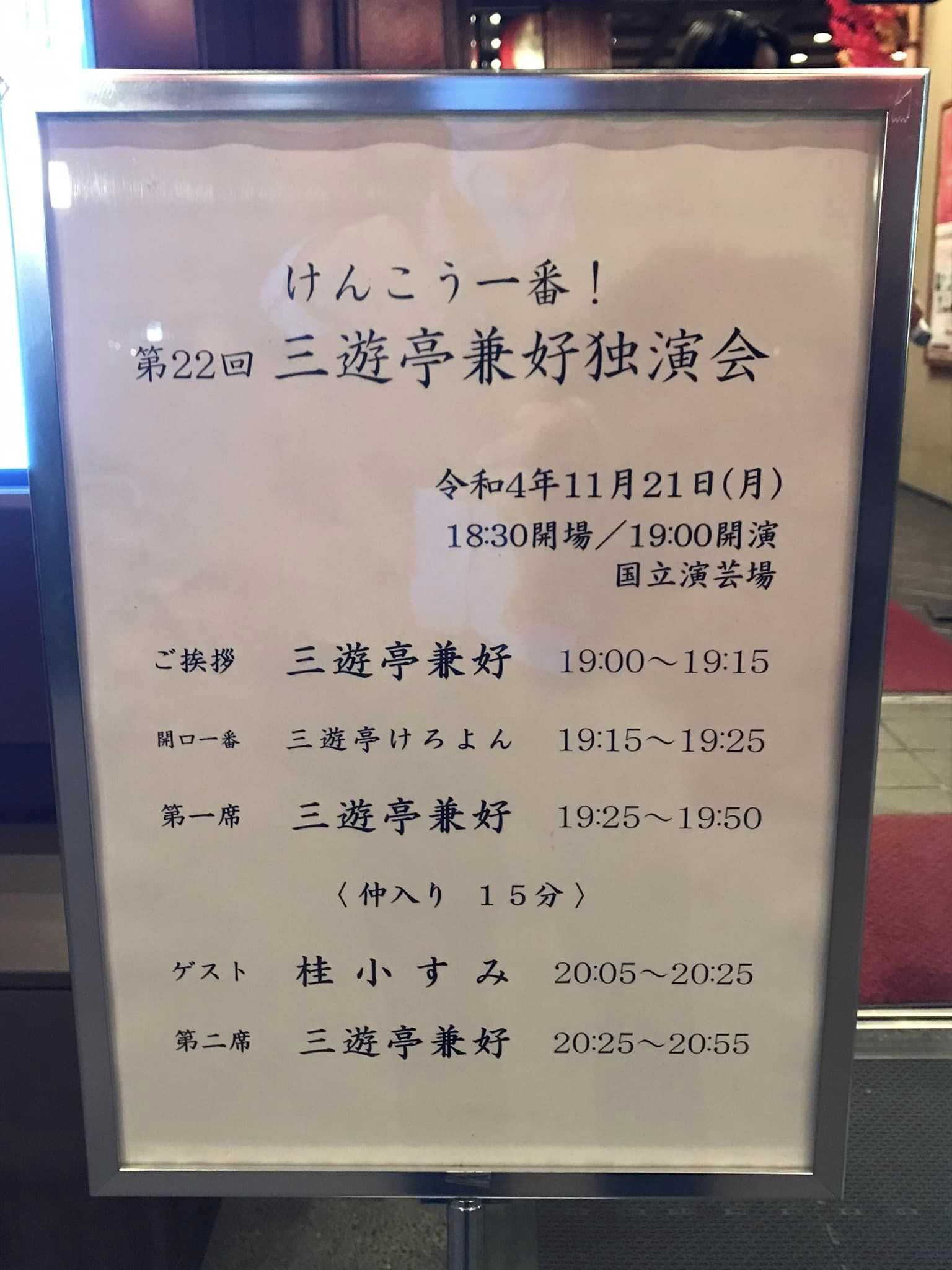 2022/11/21 けんこう一番!第22回三遊亭兼好独演会@国立演芸場​