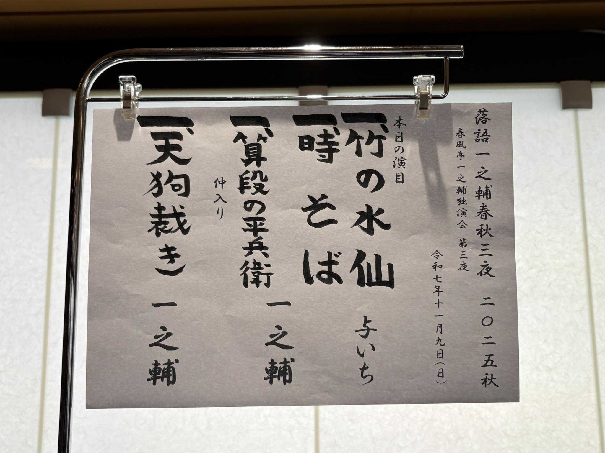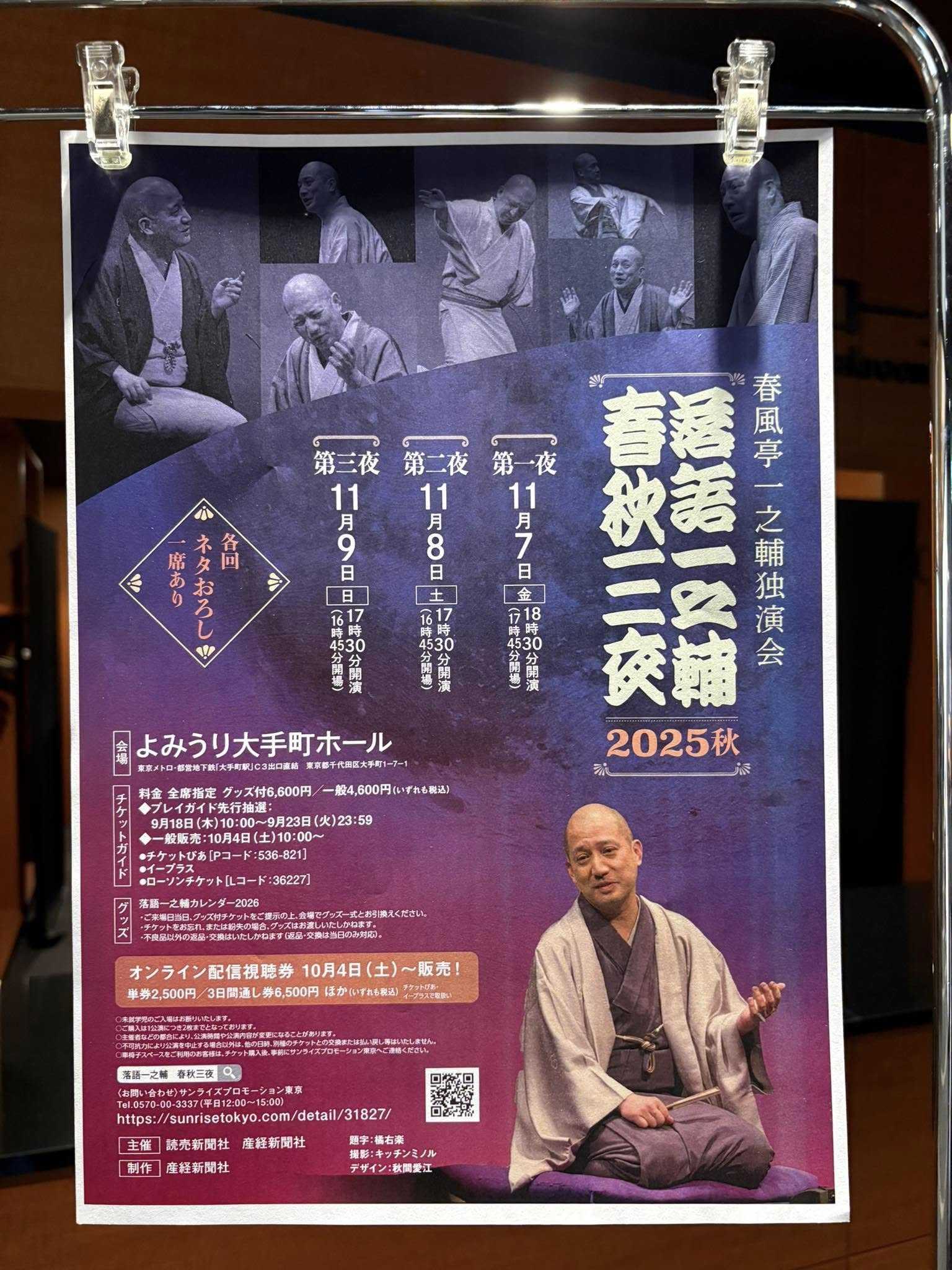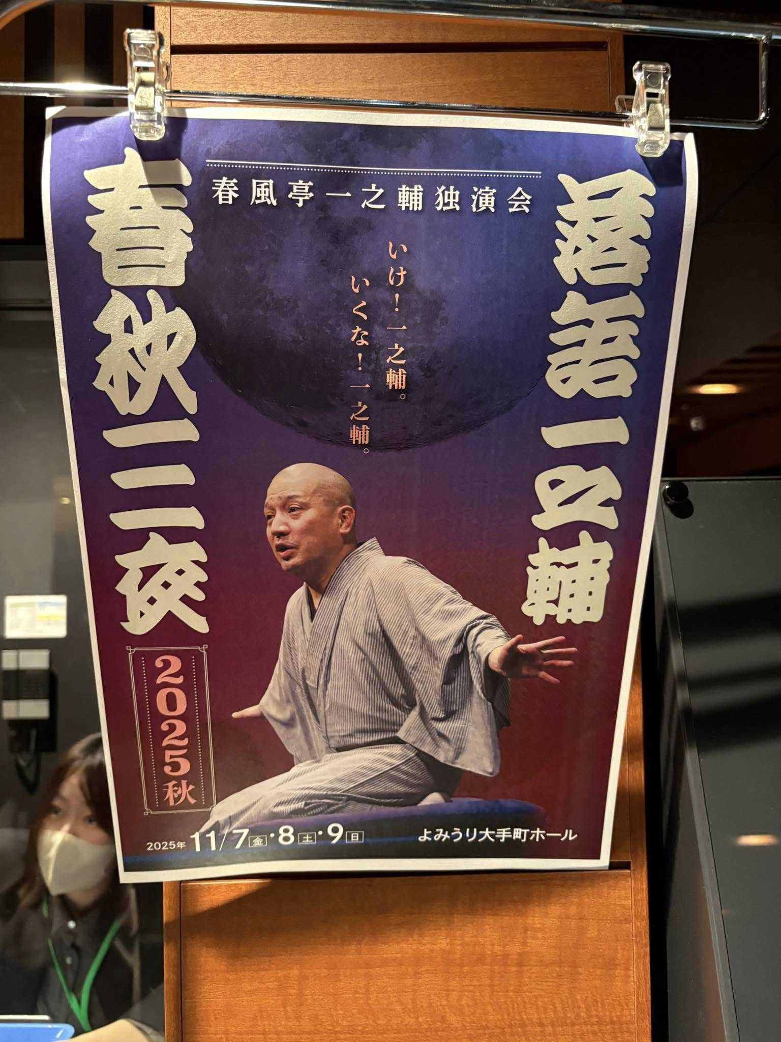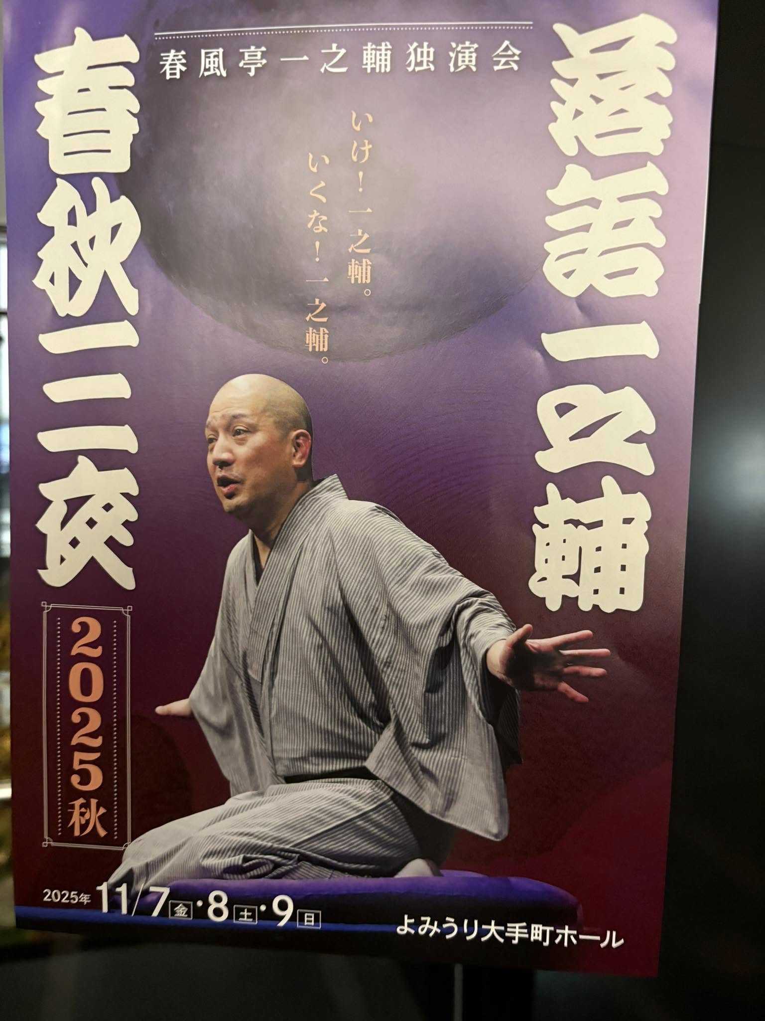 今日も春風亭一之輔さんの独演会、「落語一之輔 春秋三夜 2025秋🍂」に参上!