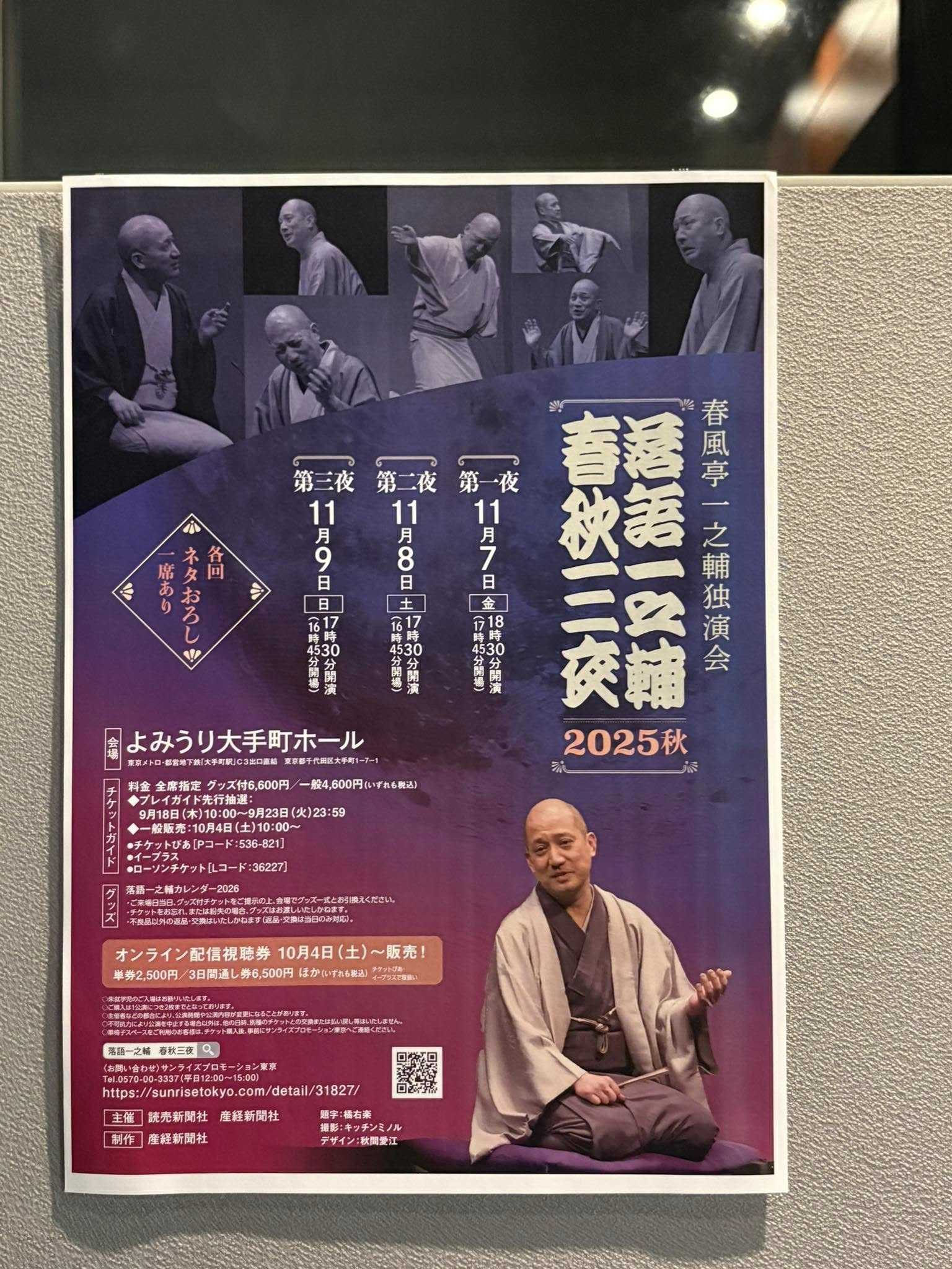 11/9(日) 落語一之輔/春秋三夜 2025秋 第三夜@よみうり大手町ホール