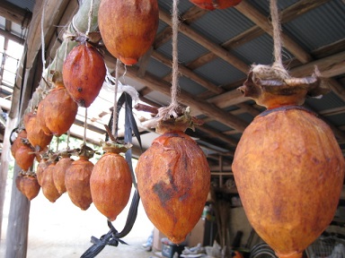 いつも採れる干し柿がなかったので今年はあきらめていましたが被害に遭わなかった柿の木があり 少しですが柿を吊るしました 私でなく母親です 80歳こえてもマメですね 約10日位経ちました でもね風がなく夕方に高くなってくる湿度寒いのも嫌ですが、風がないと乾した柿が危ないですね団扇であおがないと・・・・・もう少ししたら、少しもんで 出来上がりまでに味見して出来上がったころには全部食べてしまいそうです 子供の頃よく作った干し芋(きりめと言います)きりめもよくつまみ食いしたものですお店で売っている価格、今は高いですね 子供の頃の今の季節の食べ物は餅ときりめ、干し柿位?こずかい10円の時代の方が 幸せだったかもしれません