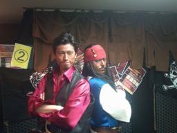 何とか無事終わりました。手作り感たっぷりの企画だったと思います。お客さんからは「日本語しゃべれますか?」とか「なに人ですか?」とかリアルに聞かれたね(笑)中には近づいたら「キャーッ!」と悲鳴を上げた子もいたし(爆)予想通りにいかないのも面白いけどね!片付けが終わった後は、公約どおり3人の海賊でダッシュしました。やるんじゃなかった・・・。足が筋肉痛になったじゃないか・・・。通行人にはうけてたけどね。打ち上げのビールは格別でした!!ウィルターナー役のシュンスケ君もお疲れ様。次は10月のハロウィンです!