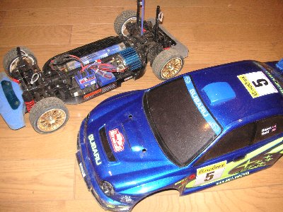 TT-01 ボディーはGDAAインプレッサです。でも自分で走らせたわけでは有りません。息子が友達とラジコンで遊ぶとのことで、前の日の夜にがんばってセットアップしました。元々ドリフト用のTT-01Dなので、サスは変なセッティングですが、息子には走ればどおでも良いみたいです。モーターは谷田部レースで使った30Tモーダーで、スピードは程々にに。ボディーはボロボロ