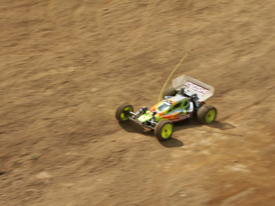 久しぶりにラジコンしてきました。いきなり結果ですが、ダメダメのほぼ最下位です。まだまだ鍛錬が足りないですね。ただ今回は練習時にアクセル微妙なコントロールの仕方が"ちょっとわかった気"がします。ものにはできていませんけど・・・絶好調(??)だっカッキーさんのRB-5!パーツ分けていただいてありがとうございました。m(__)mデフが壊れて悩む赤アブさん。赤アブさんの35Tに17Tで勝てませんでした・・・・(T_T)でもいいのだ!これからもマイペースでがんばります。西山RCクラブの皆様には邪魔ばかりしてご迷惑をおかけしました。これからもよろしくお願いいたします。