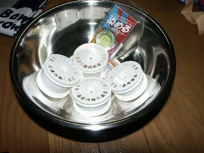 今日は息子の運動会でした。彼は運動音痴なので結果は聞かないで下さい。私自信は中学時代陸上部で、市内優勝の経歴もあるのですが誰に似たのでしょう。(ちょっと自慢)息子の大イベントの報告はこの程度にしておいて、またまたラジコンネタです。この人はラジコンのことしか考えてないんじゃないだろうかとあきれないで下さい。ラジコンカーをチューニングする上で一番大事なのはコースに合ったタイヤの選択!そこでヤタベアリーナに相性が良いといわれるProLineM3で1セット組むことにしました。ホイールの材質は塗装しても塗料が剥げやすいので、染めこみます。先日の写真のとおり、私の愛車はスバルカラーで(この写真のホイルは塗装したのですが、その後びりびりにはがれた)、スバルカラーと言えばホイルは金色が相場ですが、金色の染料は無いのでロゴマークと同じ蛍光イエローにします。染料は衣料などを染める物で、ホームセンターで売ってます。標準の指示は80℃で20分漬け込むのですが、料理に使う鍋に染料を入れるなんてことは嫁に許してもらえず、これまでは沸騰したお湯に染料を溶かし、自然冷却しているうちに染める方法を取っていました。(こちら)今回は100円ショップでステンレスのボウルをゲットしたので、めでたく煮込段取りができました。それでもキッチンで作業することは許されず、ベランダで簡易スタンドを照明に作業です。温度を80度に保って20分、ここで塩を入れるのを忘れていることに気づき、塩を投入!さらに20分煮込んで、後は20分自然冷却するのを待ちました。結果は上々!下の写真は左が冷却しながら2時間付け込んだ物、右が今回煮込んだ物で、良い色に染めることができました。これでやっとタイヤを組む作業に入れます。