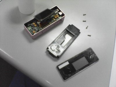 昨日に引き続き今日も修理!お友達のナベティーさんのMP3プレーヤーが壊れたとのことなのでちょっと見せてみらった。USBの本体側のコネクタピンが陥没しています。とりあえず3枚に開いて・・・カバーが接着されていたので、かなり無理やりでしたけど。(^_^;)問題のUSBコネクタのピンは基板から剥がれちゃっていました。まず陥没しているのを押し戻してハンダ付けして・・・修理完了\(^o^)/結構修理できるもんですね。これで食っていけるかな?でも最近は目が弱くなっちゃったんだよね。(>_
