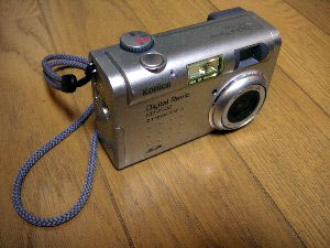 一応写真撮影も趣味にしています。でも最近はすっかり写真をとらなくなっちゃいました。腕前はチョーローカルなコンクールで2回ほど賞を取ったことがあります。その割にはブログの写真とかいいかげんですが、、、(^_^;)我が家にあるカメラを紹介させていただきます。まずトップバッターは KonicaDigitalRevio KD-200Z初めて買ったデジカメです。スペックは200万画素で3万円ほどで入手したと思います。当時はMTBでの山登りが自分のブームだったので、これを持って良く走りに行きました。ポイントはなんと言っても単3電池が使えること!当時のデジカメは電池の消耗が多くて、メモリよりも電池が切れて写真がとれなくなる危険性が高かったので、電池が確保しやすいと言う理由で選びました。難点は背面のグリグリレバーレバーで各種メニュー選択などをするのですが、やや操作し辛い点。またかばんの中に放り込んでおくと、電源が勝手に入っていたりすることです。山をMTBで上りきって頂上で記念撮影をしたのに、帰り道で勝手に電源が入り全消去されていた時はさすがにがっかりしました。それでもこれまでフィルムで撮影していた物を現像に出してフィルムスキャナで取り込んでいたものが、手軽に電子データが得られる手段としてホームページ撮影やオークション出品写真、また普段のスナップ撮影用には十分機能してくれました。今でも息子の専用機となって現役で稼動しています。