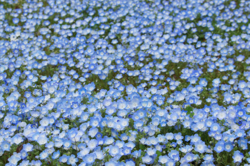 今日はネモフィラを撮るために相模原公園に行ってきました!実は昨年ネモフィラをこの公園で見たときに綺麗な花だな~って思ってその1週間後くらいに、また見たくてもう一度訪れたらネモフィラの花は跡形もなかったのです(T.T)だから、今日は待ちに待った日なんです♪ネモフィラがたくさん咲いていました♪咲いている場所は相模原公園の駐車場から水無月橋に向かって歩き橋手前付近です。径2cmほどの小さな花です。つぼみもまだあるので、もうしばらくは楽しめそうですよ♪去年はあまり撮らなかったので、今日はたくさん撮りました♪濃い青と薄い青の花があります。稀に真っ白のネモフィラもあります♪
