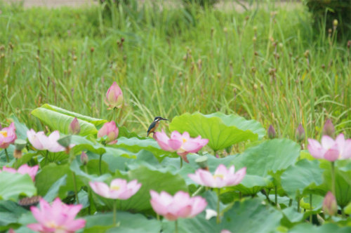 今日はneonさんと☆yoshiさんと蓮池で一緒に撮影をする約束をしていました♪neonさんは朝早くから来ていて、私は8時ごろに蓮池に到着!すると早速カワセミがいました♪蓮のつぼみにはとまってないので数枚撮りながら観察をしているとつぼみのほうに行きました!大きな花にとまっているかのように見えますが、実際は花の後ろに隠れてるつぼみにとまってます^^よく見るとつぼみが見えます。今日のカワセミはサービスが悪く5分弱で別の場所に移動しその後、蓮池にはとまってくれなかったです><大砲(大きいカメラ)の数に圧倒されたかな?(^-^;数人帰ったあとに数えてみたら26台ありました。蓮池の近くを歩いていると7羽以上のカラスに追われている鳥がいました!何が追われているのか分からないけどとりあえず撮ってみたら1枚だけまともな写真が撮れました(^-^;ゴイサギの幼鳥(通称:ホシゴイ)でした。珍しいものが見れました^^ホシゴイはその後カラスから逃げるように遠くに行きました。neonさんが帰宅後、☆yoshiさんと川沿いにカワセミを探しに行きました。いましたが、変な場所に隠れてしまい動きがなくお腹もすいたので先にあがることにしました。途中蓮池を通るのでカワセミいるかな~って思ったら・・・アオサギがいました♪でも、カメラマンは誰も撮ってないです・・・。そんな中私はたくさん撮りました(笑)