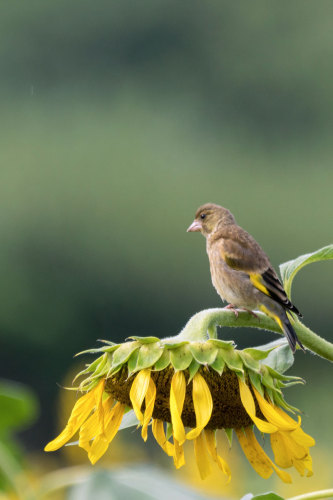 座間のひまわりまつりは終わりましたがひまわりの様子を見て来ました^^目的は野鳥です♪ひまわりとカワラヒワ♪スズメの幼鳥が休憩中^^こちらも幼鳥です。