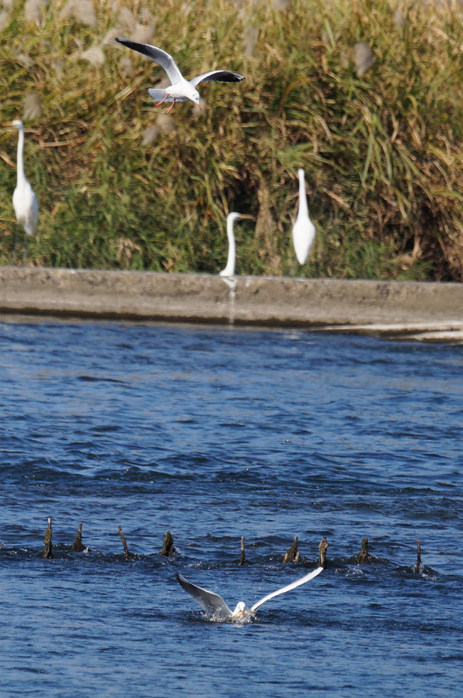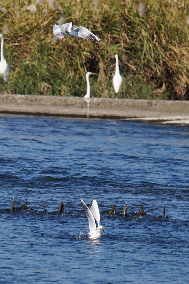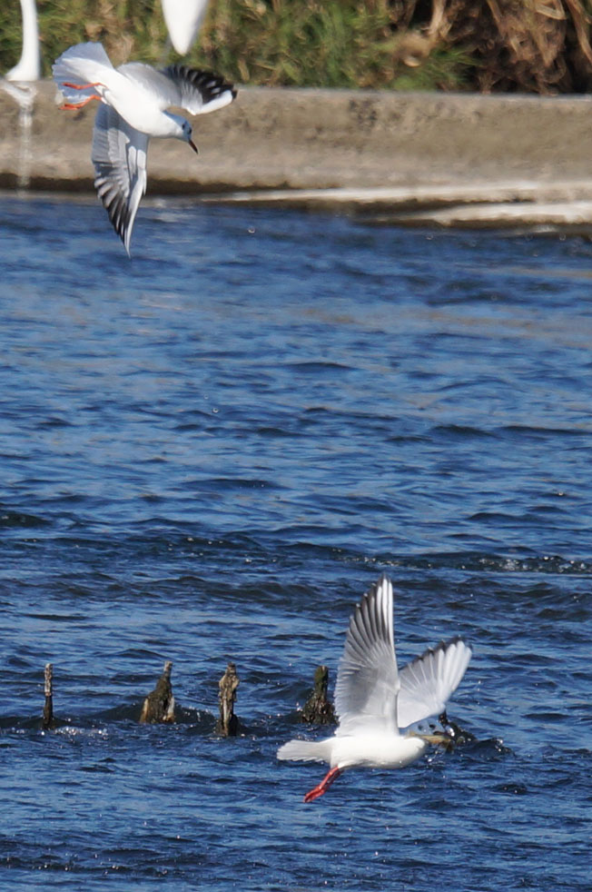 その様子を見つけたユリカモメも上にいます。