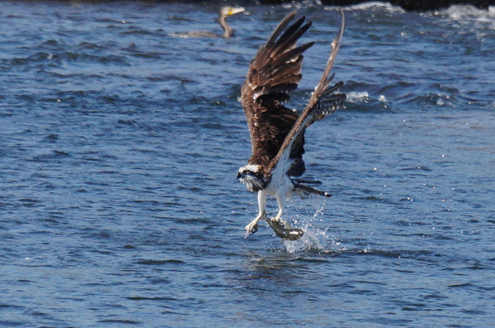 背中を向けてますがその脚は魚をしっかりつかんでます!