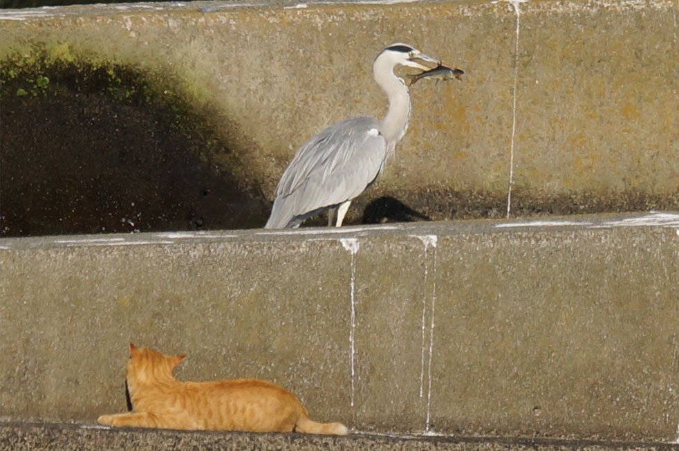 そのアオサギを狙う猫!?