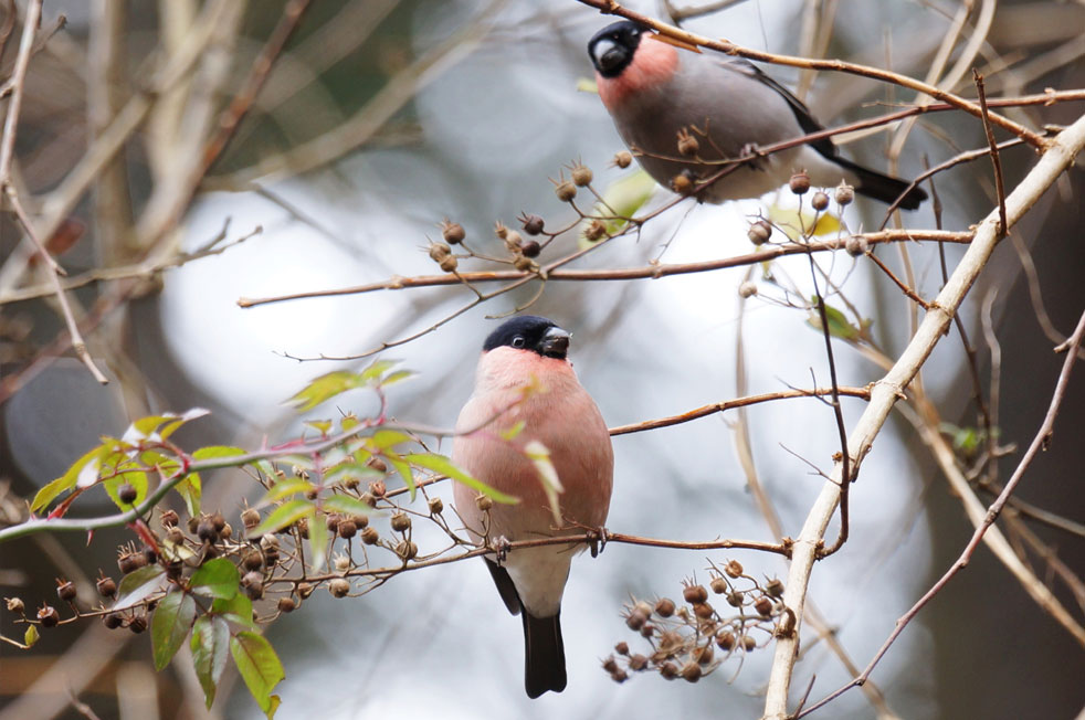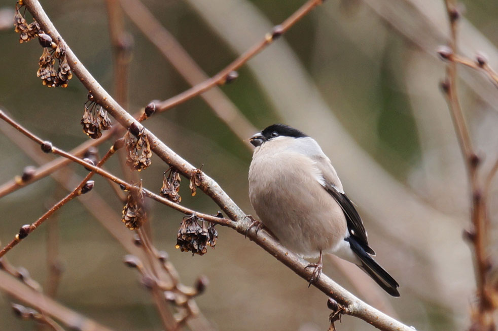 写真右上にウソのオスがいますがウソの群れに混ざってました。