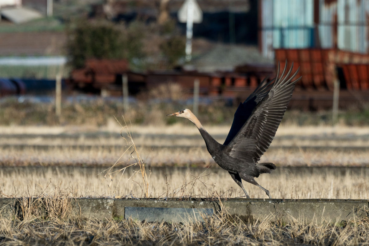 今日は神奈川県にやって来たナベヅルの幼鳥を