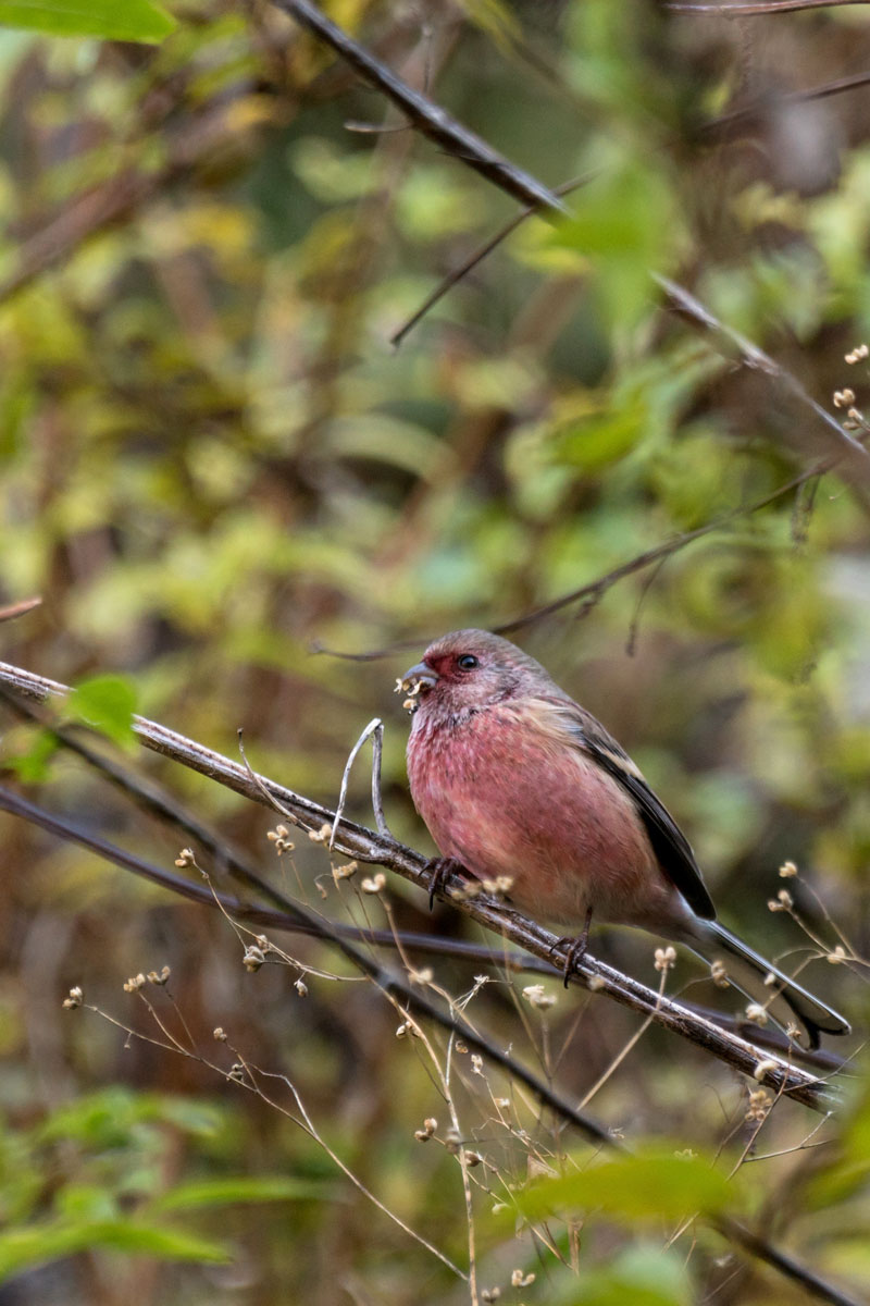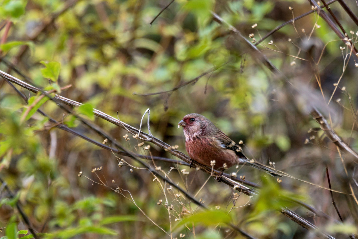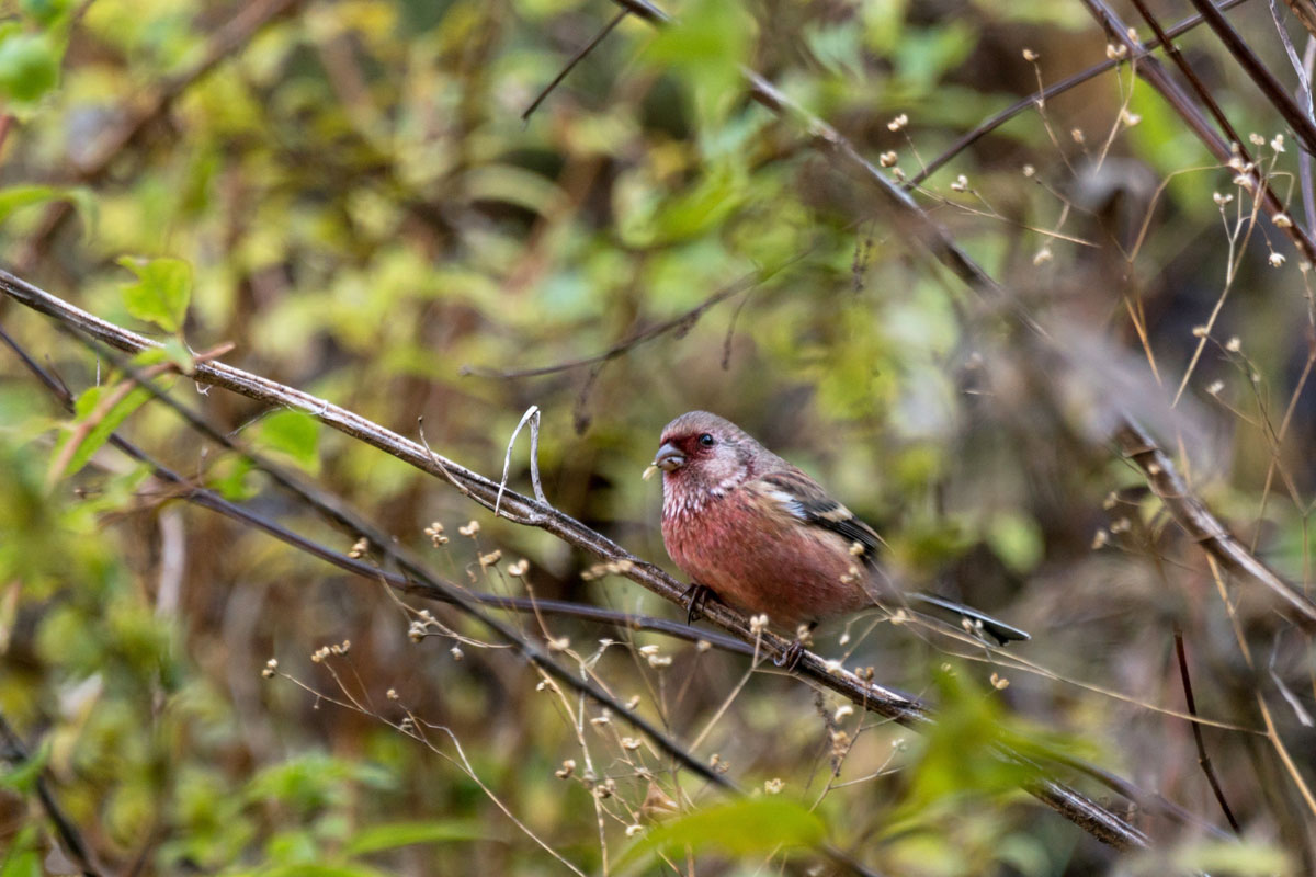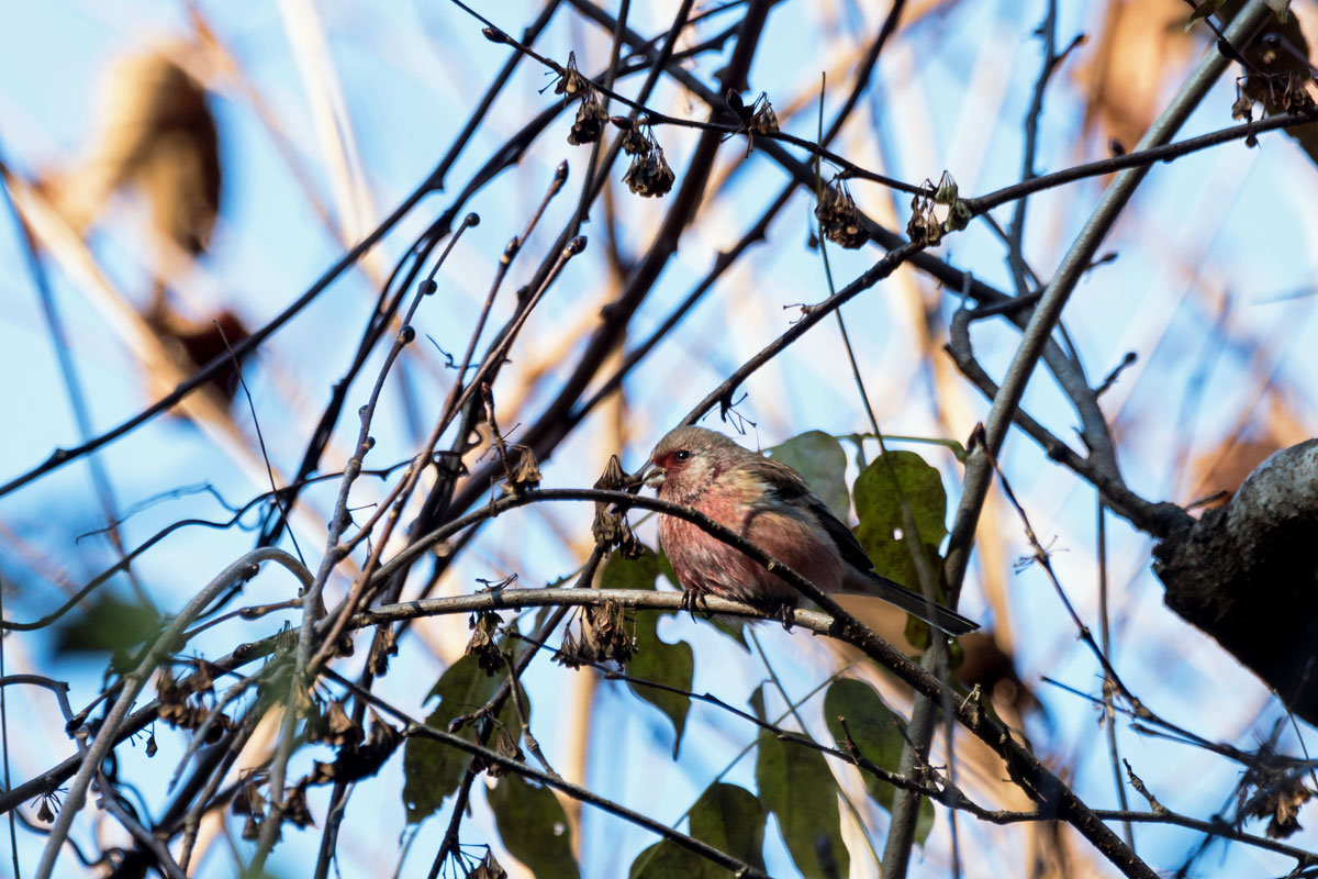 距離が遠かったので等倍トリミングしてます。 ベニマシコのオスです^^