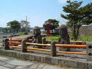 石のおじいさんトルハルバン、民族村の入口にいました。村の守り神で持ち出し禁止、何故かと言うと、チェジュでは石が大切、強い風から暮らしを守るので、この溶岩石は島から何処へも行けません。