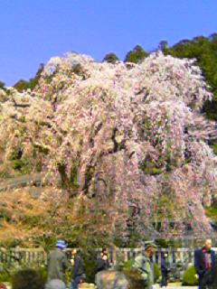 見事なしだれ桜、もう満開です。樹齢400年だそうですが、本当に綺麗です。お祭りはこの土、日 雨が降ったらもうお終い。早く見に行ってくださーい。