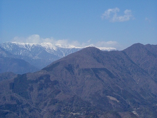 身延山ロープウェイで山頂まで上って来ました。雪を頂いた鳳凰三山、美しい!富士山も少し頭を出しています。