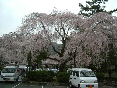 見事なしだれ桜、車が入らなければ良かったのに