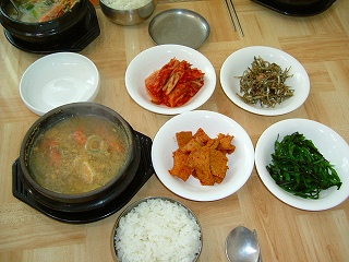 貝、イカ、海老など海産物と、豆腐、野菜など味噌味で煮込んだヘムル、トュクペギメニューの写真ほど豪華ではないけど、辛さも控えめ、とても美味しくいただきました。 それではパチリッ