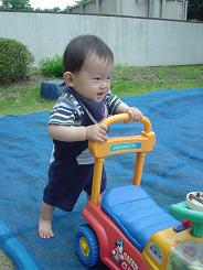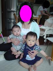10ヶ月と1日ワーイε=ヾ(*・∀・)/ついにりゅうくん10ヶ月になりました~♪♪♪一歳まであと2ヶ月か~早いなぁぁ(///ω///)♪ほんとあっという間。去年の今頃はだいぶ大きくなってきたお腹をかかえての毎日で、胎動で激しくキックされるたびに幸せな気持ちになったもんだ…早く出てこないかな~と待ち遠しく過ごしていたなぁ…ププッ ( ̄m ̄*)それにしても毎日毎日暑い!!!!!!ばてばてです…(゜-Å) りゅうは暑さなんておかまいなしで、一日中動き回って遊び狂ってます…。そんでもって、かく汗の量が半端じゃない!!!!!!!!!!!!!!何かの病気なんじゃないかと思っちゃうほど、ずっと汗かいてるんですけど…。みんなのベビもそお??動いても汗…寝ても汗…とにかく汗、汗、汗、、、。(;・∀・)ダダイジョウブ・・・?おかげでお尻やひじの内側とかにあせもちゃんができちゃいました… ( ノω-、)だから最近はいつもの夕方のお風呂に加えて、朝や昼にシャワータイムして、シャワー出た後は全裸で放牧タイムしてます…(///ω///)♪全裸は気持ちいいらしく、一回おむつしてないのにおしっこしちゃったことがあったけど…笑これからもっと暑くなるもんね~今からあせもができてしまうようでは心配です…( ´Д⊂ヽさて今日の写真↓みんなのベビはご飯の時自分で食べようとする?うちのりゅうはあんまり自分で食べようとはしません。この間試しにパンを手づかみできるように細長くしてフレンチトーストにしてあげてみたけど、ぐちゃぐちゃつかんで遊ぶのみであんまり口に運ぼうとはしませんでした…。ちなみに最近離乳食の中だるみなのか、ほとんど食べてくれないよ…。・゚゚・(´_ゝ`)・゚゚・。ま、またそのうち食べるようになるかな。あんまり食べないもんだから(?)昨日なんてりゅうに昼食べさせるの忘れちゃったよ…笑「ぐちゃぐちゃにぎるのがおもしろーい」最近のりゅうの一日のリズムとしては午前中に一度買い物がてらお散歩に行き、お昼食べて家でひと遊びしてお昼寝した後、4時くらいに涼しくなってきた頃から夕方まで団地の公園で遊ぶというのが日課になってきました。ちょうど幼稚園から帰ってきたお友達とかもその時間帯に遊びに出てくるのでとてもにぎやかです。りゅうはまだ一緒には遊べないけれどいい刺激になってるようです。今の時期は日が長いから、ついつい時間を忘れて遊んじゃうね。いつもの公園での一幕↓「お兄ちゃんが乗ってるブーブーが気になるよぉ」「だめ。お兄ちゃんの!」年上のお友達の今のブームはシャボン玉です!とってもきれい♪毎日いっぱい遊んでおおきくな~れ♪りゅうのとなりにいるお兄ちゃん、りゅうに似てると思わない?顔のつくりが似てるんだよね~。きっとりゅうが大きくなったらこんな感じになるんだろうな!?笑今日はここまで。最近りゅうは後追いもヒートアップ!!なかなかブログも更新できない…(゜-Å)みんなのとこもなかなか行けなくてごめんね~。では。