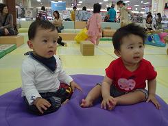 9ヶ月1週6日いよいよ関東梅雨入りしたね~( ´Д⊂ヽエーーンりゅうは毎日元気にうちの中を行ったり来たり…色んなトコロにつかまっては立ち上がり、最近はちょこっと伝い歩きもできるようになり…なので、まる一日家の中ではすぐに飽きてしまってもちません…。:゚(。ノω\。)゚・。早く梅雨終われ~!(ってまだ始まったばっかりか…)私も家に一日いてもつまらないので、できるだけお友達と会ったり、団地にある公園に行ったりするようにしてはいるものの、やっぱり雨だと厳しいよね~。ベビーカーにつけるビニールのカバー買おうかな~。そうしたらもっと手軽に出かけられるかな…。先日そんな暇をもてあそんでいるときにお友達とスーパーの赤ちゃん広場に行って、りゅうを放牧したときの写真↓6月7日近所の同級生女の子(こゆきちゃん)と遊びました。こゆきちゃんは果敢にも大きいお姉ちゃんやお兄ちゃんのいるところにハイハイで突進!とてもたくましい!!…それに比べてりゅうは…どこに行くこともなく…じーっと座って他の子が遊んでいるのを観察している…びびりだ…(´ヘ`;)とほほ・・こゆきちゃんは笑顔が超超かわいくて、でも声はしぶくて(笑)、私はすっかりこゆきファンです…。こゆきママ&こゆき姫、また遊ぼうね♪翌日6月8日、やはり母親学級時代からの同級生たち4人集合して遊びました。昨日のこゆきちゃんもまた登場。またしてもハッスルして遊ぶこゆき姫(^m^ )サスガ!みんなどんどん大きくなって、色んなことができるようになり、それぞれの個性も光っていて、見ていて飽きることなく…ホントに楽しい時間を過ごせました。昨日6月10日は私の母親がうちに遊びに来ました。沢山遊べるようになったりゅうに感動してました。ちょっと曇ってたけど、ちょっとだけ公園に行って遊びました。団地のお兄ちゃんのブーブーを借りて、歩く練習もしました…だいぶ自分で足を前に出せるようになりました。あと、タイトルに書いた通り、昨日から「イヤイヤ」ができるようになりました。ご飯食べている途中で、「もうお腹いっぱい」になると首を左右に振って「いらない」と表現したりします。あとは普段遊んでいる時でもりゅうの顔の前で「りゅうイヤイヤは?」と首を振ってみせると、真似して首を左右に振ります。なんか、はじめて意思疎通が形になったので、とても感動しました…(ノ∇・、)クスンさて、明日は車で私とりゅうと、私の大学時代の友人の三人で静岡の友人のところに遊びに行きます!今月は福島だったり静岡だったり…大忙し!でも超楽しみ!今回は往復私が運転しないといけないので、りゅうくんお利口さんに乗っていてくれることを祈るばかりです…(´;д;`)静岡の友人は今年一月に赤ちゃんが生まれて、お互い子育てにがんばっているところなので、色々話しが盛り上がりそう!!!りゅうと同級生だし!!!帰りは実家に寄って一泊してくる予定です♪じいじと妹に会うのも久しぶりなのでそれまた楽しみ♪てなわけで、いってきま~す♪