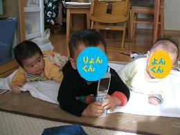 りゅう 2歳5か月 たいが 0歳4ヶ月 4週2日今日でりゅうがちょうど2歳5か月になりました。おめでとう来月でもう2歳半なんだね~!早いなあ!2歳になってから引っ越し&弟誕生でりゅうにとっては試練の半年だったねえ。「イヤイヤ」全開で年末あたりは私も悩むことも多かったけど、最近はそんな状況も多少落ち着いてきて、また一歩お兄ちゃんになったような気がするし、どんどん成長しているんだね~!えらいぞ、りゅう!さて、昨日は遠路はるばる以前住んでいた場所に半年振りに遊びに行きました。早起きして電車に乗ったはいいものの、はじめの地下鉄は通勤ラッシュ!「すみません、ここに子供がいるんです」とりゅうとたいがを守るのに必死!!あんな時間に子連れで電車に乗った私が悪いんですけどね…苦笑そんなこんなで都会の人の多さに早くも疲れ果てた様子のりゅうを連れ、2時間後ようやく駅に到着!!午前中はブログでも仲良くしてもらっているリョンくん&ヨンくんのおうちへお邪魔しました。リョンくんはりゅうの2か月後のお誕生日、ヨンくんはたいがの2か月後のお誕生日、同じ男二人の全く同じ年の差兄弟の母親同士、色々通じ合える大事なお友達です(*^_^*)そしてリョンくんはりゅうと同じく平和主義?で、二人は遊んでも決してけんかにならず、お互いいい距離感を保ちながら、穏やか~に遊べるとても不思議な?お友達なのです。昨日は久しぶりの再会でしたが、やはり二人は穏やかに遊んでいました。そして弟同士も穏やかに並んでました(笑)たいが、リョンくん兄弟とうつ伏せ特訓!?泣きだしたヨンくんをお兄ちゃん二人組が一生懸命あやしていました。いつの間にかこんなにたくましいお兄ちゃんになったんだね!!えらい!!お昼もごちそうになりました。CHILちゃんありがとうねーーーーー!!!!!嬉しかったよーー!!そしてその後以前住んでいた団地まで送っていただき、懐かしいたくさんのお友達と再会!りゅうは団地の公園やお友達のことを覚えているのかよくわからなかったけど、「覚えてる?」と聞いたら「うん、覚えてる」と言ってたのでたぶん覚えていたのでしょう。はじめての場所ではないと思っていたのは間違いないと思います。でも元気なお友達にはじめ圧倒され、長旅の疲れ&眠さも相まって、はじめは何度か大泣きして絶不調…。せっかくの再会だったのになあ…。でもだんだんと慣れてきて、調子乗り始め、懐かしい兄貴分の一個上のH君と楽しそうに遊んでいました。H君のお姉ちゃんの幼稚園のお迎えに同行!幼稚園でも懐かしいお友達に会うことができてうれしかったーー!!りゅうも幼稚園のアスレチックに挑戦して、楽しそうでした。そしてN田の彼女(?)のHちゃんとも再会!!!!弱虫りゅうをぐいぐい引っ張って行ってくれる素敵な彼女です!?「遠距離だけど、浮気すんなよ!!!」「そっちもね」(笑)興奮して昼寝しなかったりゅうは帰りの電車で爆睡!!!往復の電車は大変だったけど、とっても楽しい一日になりました。引っ越しの時はお腹にいたたいがも無事生まれてこうやって成長しているんだから、時の流れってすごいなあ。離れているけどこれからも大好きなお友達&ママたちと仲良く、互いの子供の成長を楽しみに育児にがんばれたら嬉しいなあ!!!!みんなありがとう!!!また遊びにいくねーーーー!!!!!!↓ブログランキング参加中!↓更新の励みになりますので一日一回ポチっと応援よろしくお願いします!