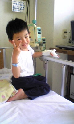 りゅうはまだ微熱があるのと、お腹がすいているせいか、ややぐったり気味ですが、徐々に冗談言ったり、笑ったりする余裕も出てきました。