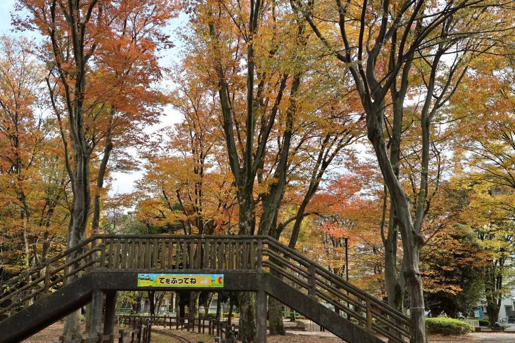 この日は平日とあって、ミニSLは動いておらず、プレーパークの子供もまばらだった。 Since it was a weekday, the mini steam train wasn’t running, and there were only a few children in the play park.