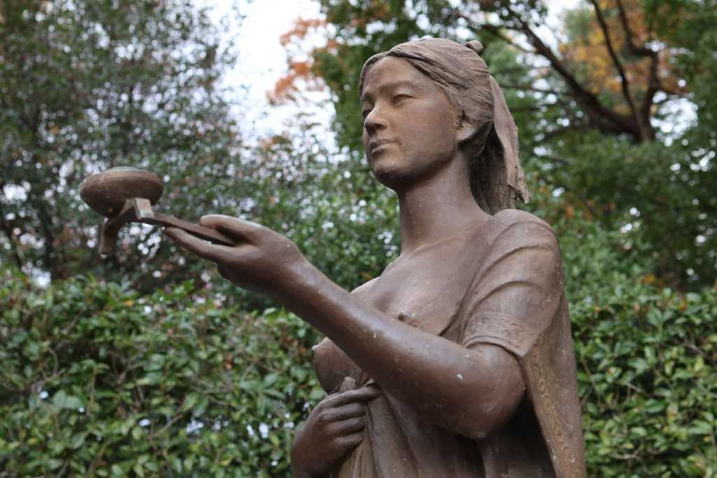 The “Prayer for Peace” statue was installed in December 1986—designated as the International Year of Peace—to commemorate Setagaya Ward’s peace declaration, funded by donations from residents wishing for peace. It’s one of my regular photo subjects, but the busy background makes it surprisingly hard to capture well.