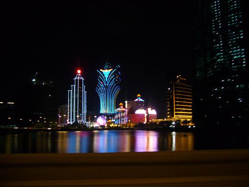夜景って作られたものなんで、綺麗な物は当たり前だと思ってました。香港の夜景を見ても上海の夜景でも。マカオの夜景は何だか違うインパクトを感じました。多分、カジノと言うものが背景にあるため、その雰囲気に圧倒されているんでしょうか。タクシーからちょっと撮った写真ですが、これはホンノ一部です。実際に見てみてもらいたいものです。そして下のがマカオに出来たMGMの中。そうです。ホテルの中なんです。上手く撮れなかったです…
