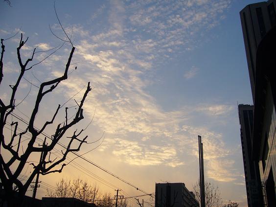 寒さが次第に増していく上海。でも天気が良い日の夕方はこんなに綺麗な空も見えます。いかが?