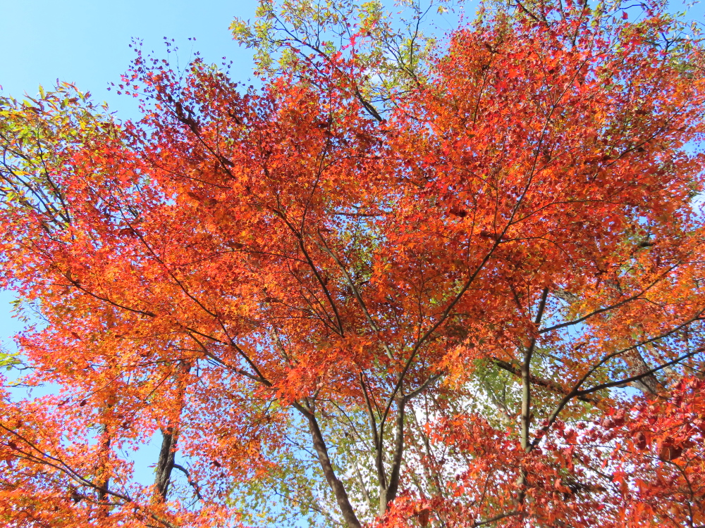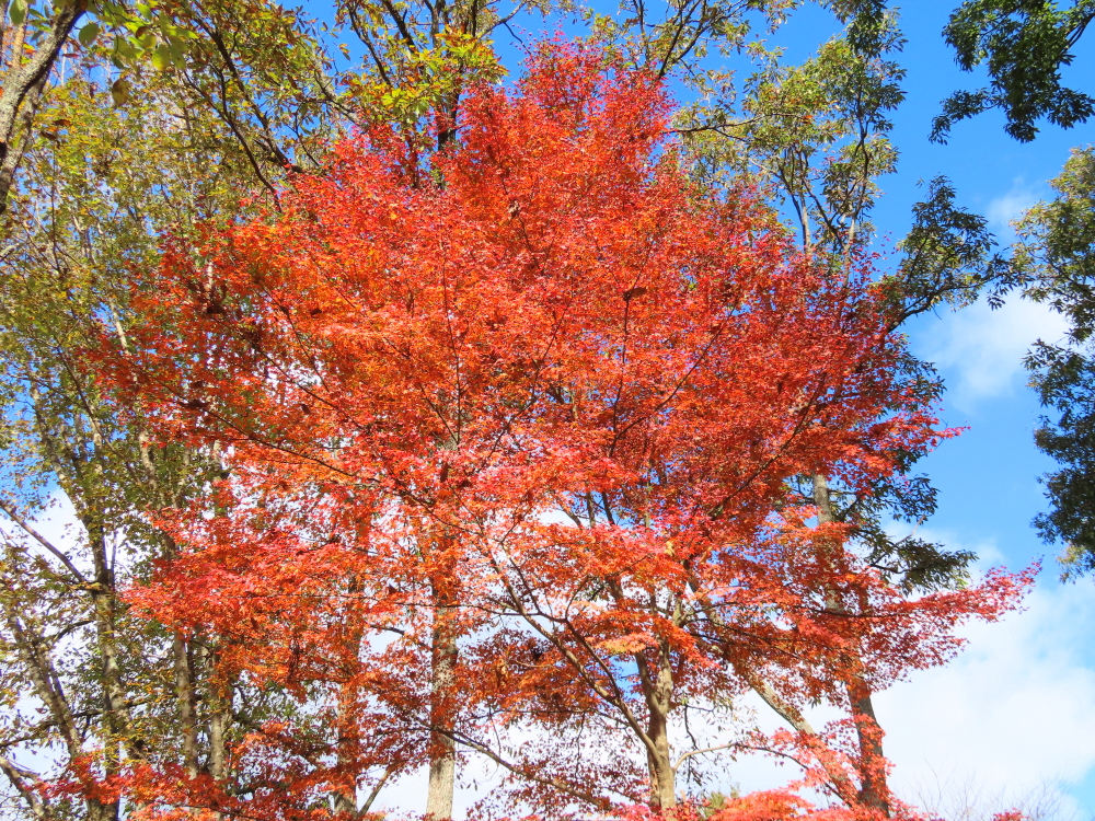 展望台まで向かう途中で見かけた、燃ゆるように紅葉したモミジの木。
