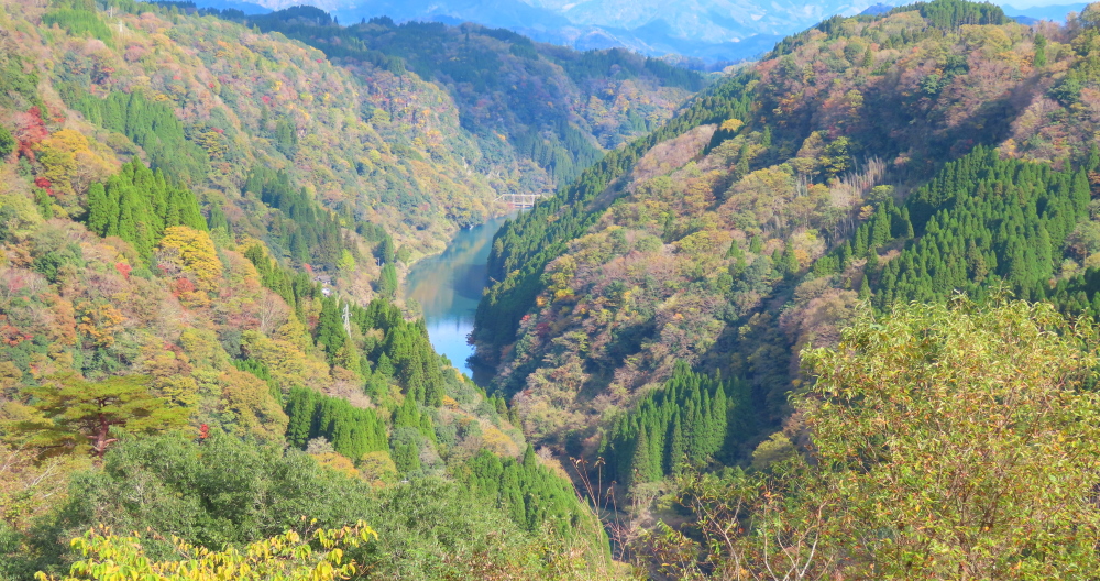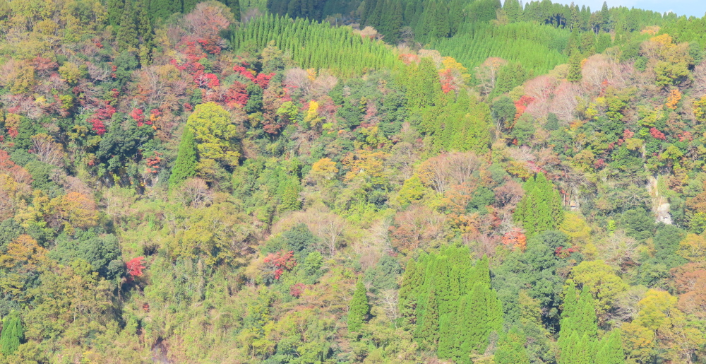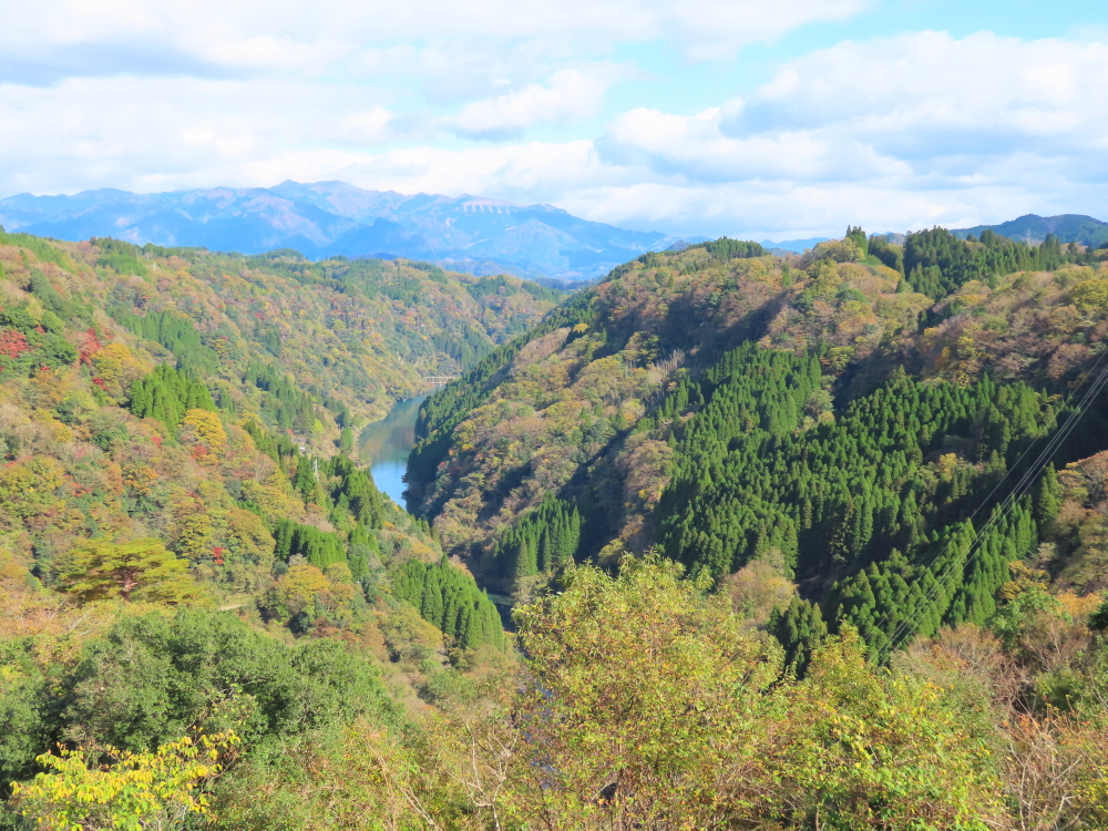 展望台から左手の方に見えた山はまだ紅葉が色褪せておらず、山肌が綺麗なグラデーションを描いていた。