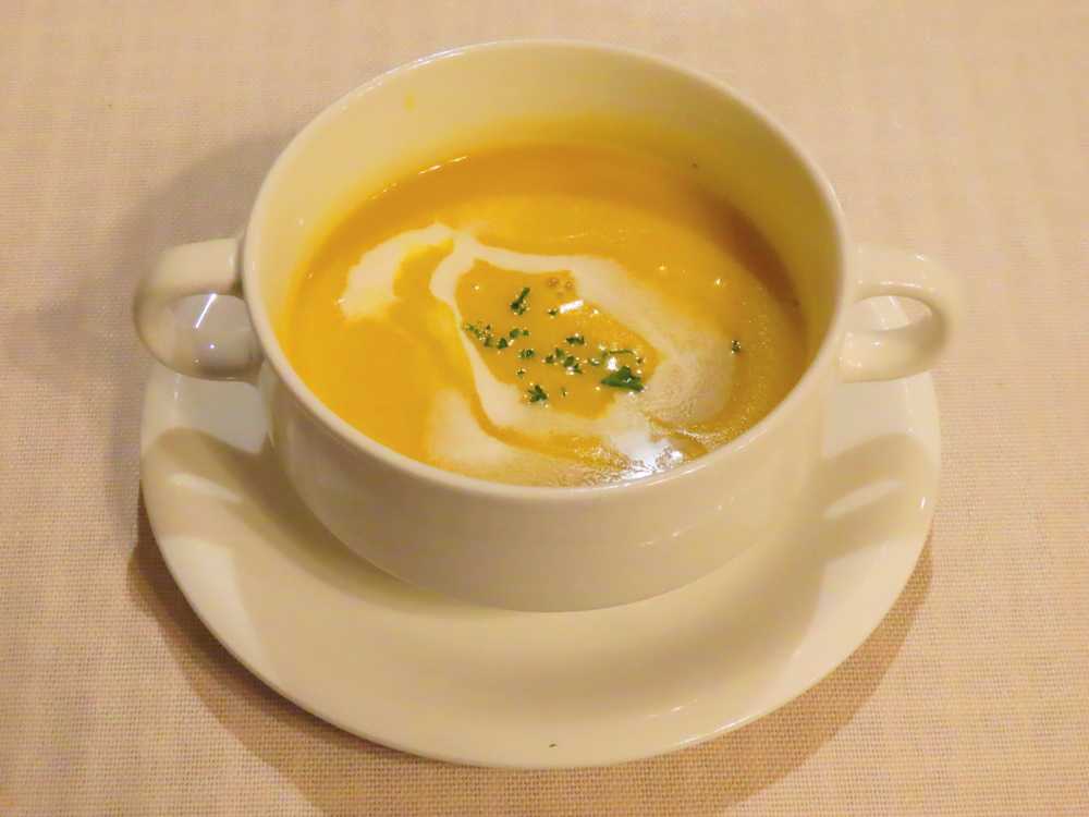 かぼちゃのスープ。ほんのりとしたかぼちゃの風味。コーンポタージュに近い感じ。