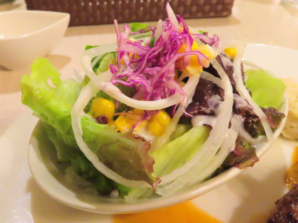 自家製ぽんずハンバーグ(150g)、かぼちゃのスープ、サラダ、ライス(パンに変更も可)