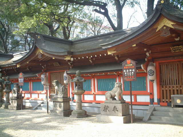 自治のシンボルである濠は、現在、杭全(くまた)神社〔下の写真〕と平野公園に一部をとどめるばかりですが、近年の発掘によって少しずつ豊かな都市の生活ぶりが明らかになりつつあります。