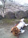 我が家の愛犬〔チャッピー〕は何時も散歩で通る郡山城跡でこんな雰囲気で戯れているのですよ。