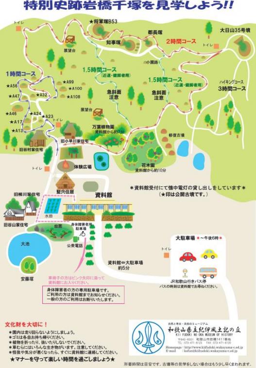 和歌山市の郊外に位置する博物館施設は、標高約150mの丘陵からその北斜面・麓まで約65haの広さがあります。丘陵の上からの眺めはすばらしく和歌山市街地・紀ノ川や和泉山脈を一望できますよ。